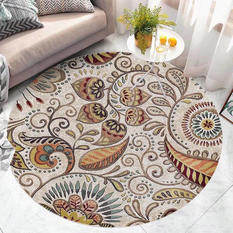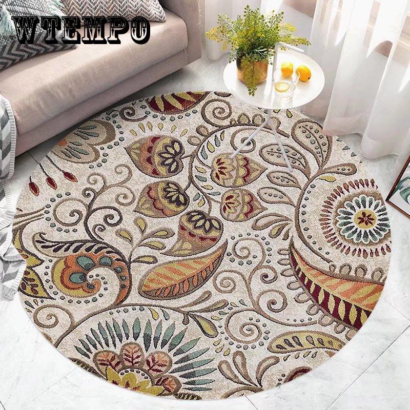 Круглые ковры для гостиной, винтажные цветочные ковры большой площади, домашний декор, роскошные богемные коврики в экзотическом стиле, мягкие полиэстеровые коврики для спальни