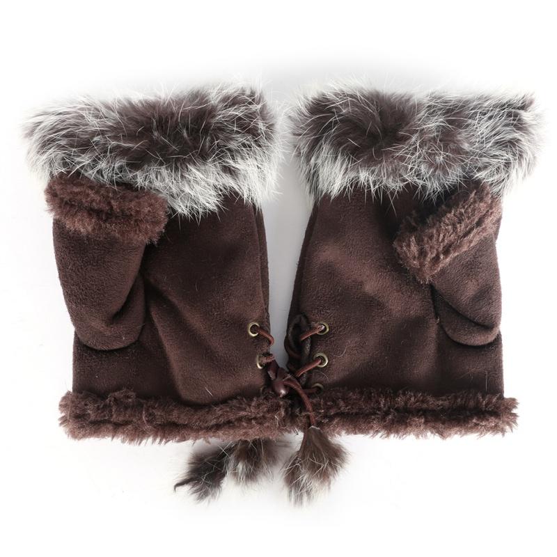 Женские перчатки из искусственного кроличьего меха, теплые перчатки на запястье, зимние перчатки