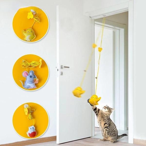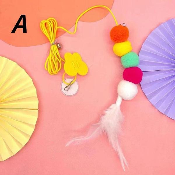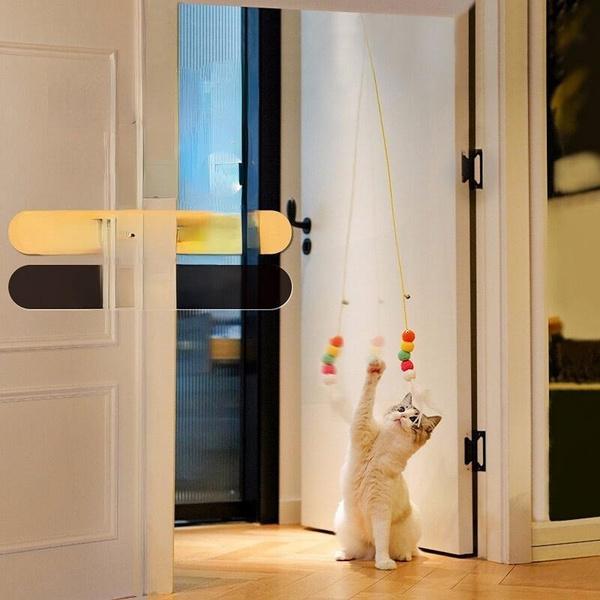 2. дизайн: Игрушка для качелей, эту игрушку для кошек можно повесить на верхнюю часть дверной коробки с помощью немаркирующего липкого крючка, отрегулировать длину веревки, отрегулировав пряжку, пусть кошка играет сама по себе, веревка эластичная, качающийся бадминтон привлекает внимание кошки На веревке есть небольшой колокольчик, которая звенит с первого взгляда, привлекая хозяина к взаимодействию с кошкой.