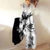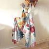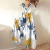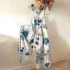 Широкие комбинезоны для женщин, повседневные свободные комбинезоны без рукавов, ретро-принт, металлические пуговицы, длинные брюки, комбинезон с карманами