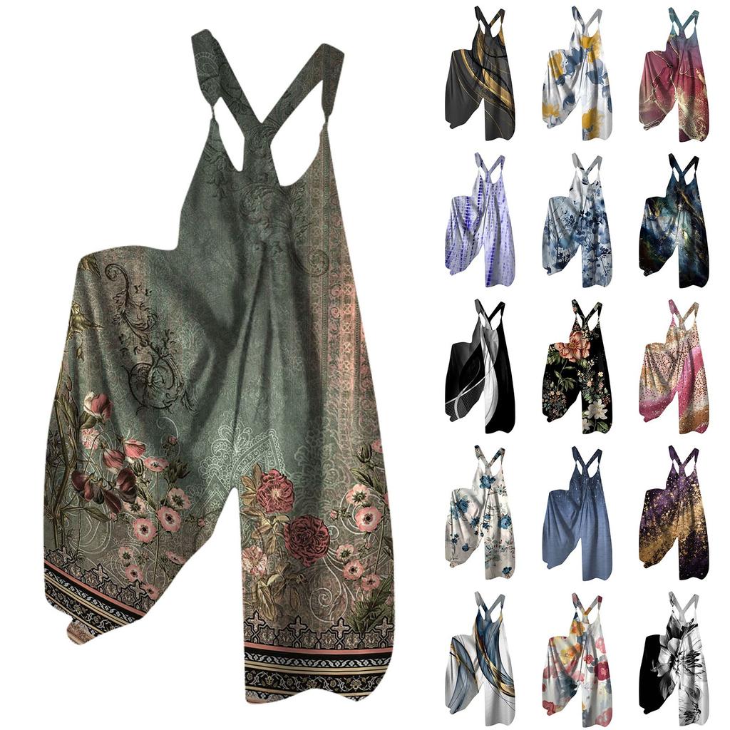 Широкие комбинезоны для женщин, повседневные свободные комбинезоны без рукавов, ретро-принт, металлические пуговицы, длинные брюки, комбинезон с карманами — купить товар онлайн с бесплатной доставкой по всему миру!