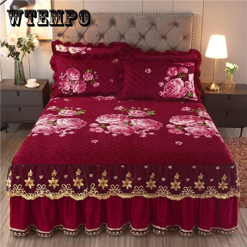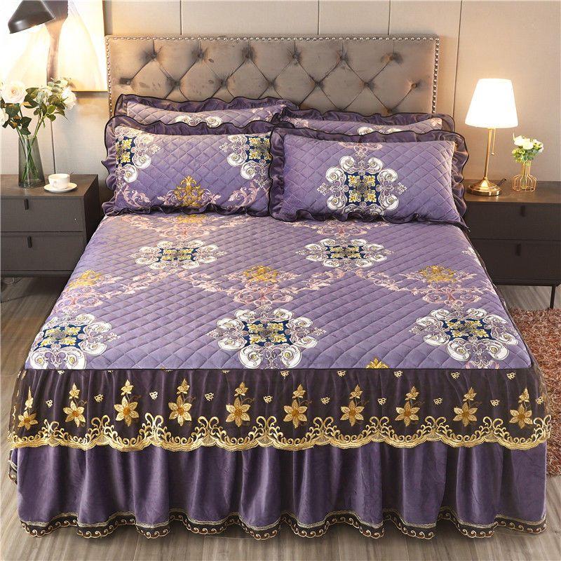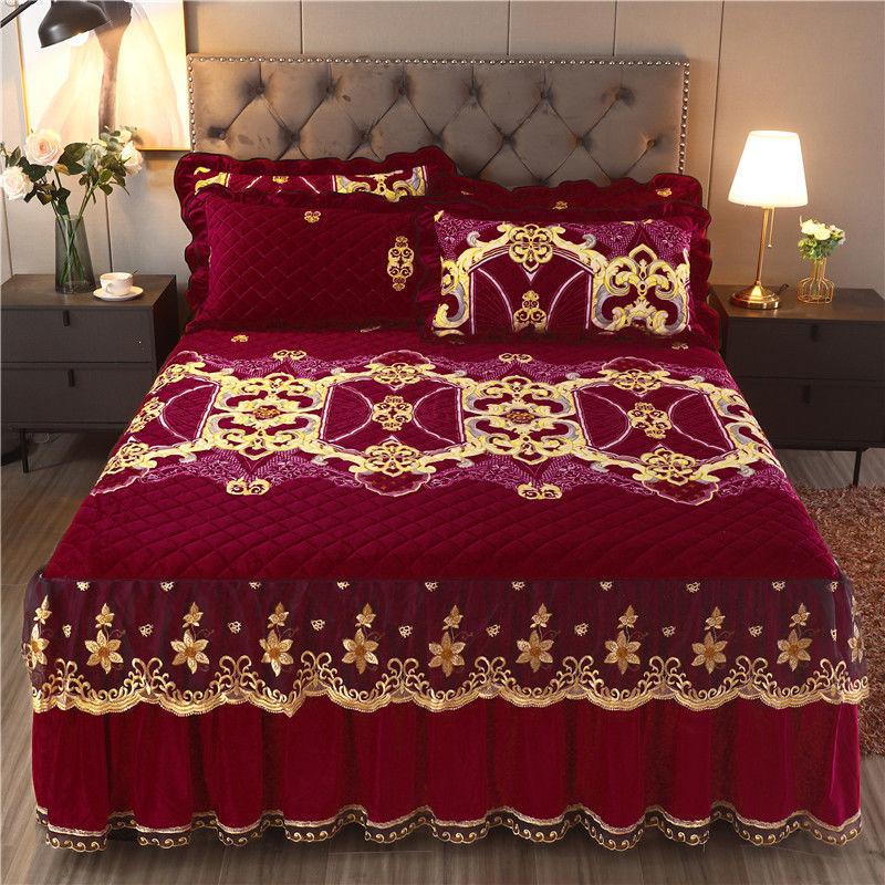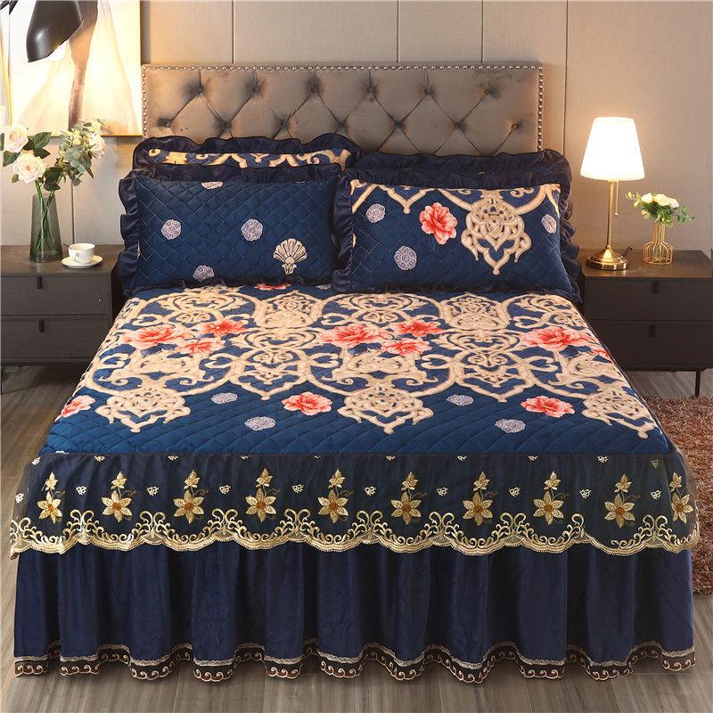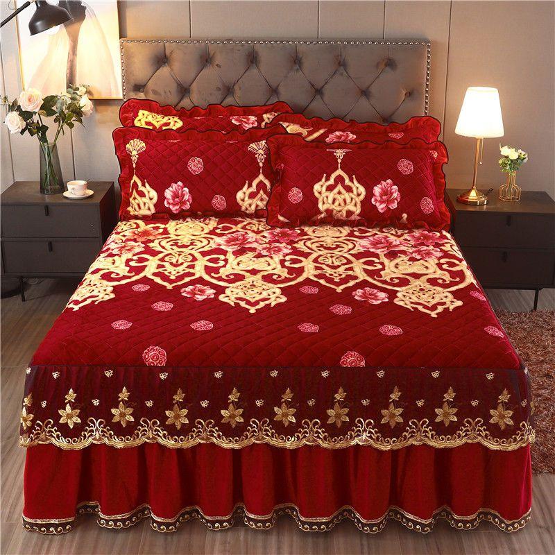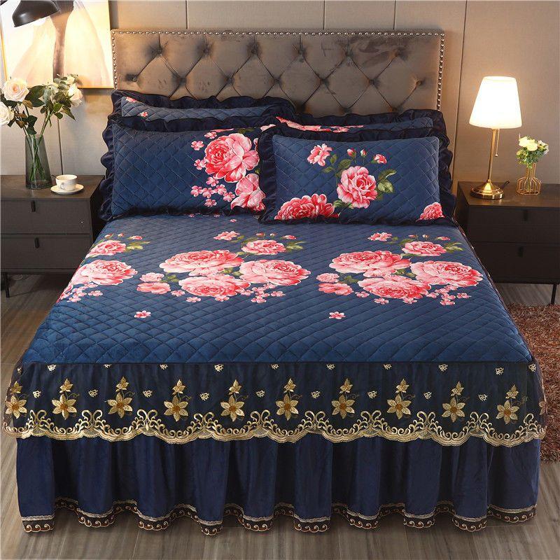 Высококачественная роскошная мягкая юбка-кровать, зимнее плюшевое толстое стеганое покрывало на кровать, покрывало King Queen Pad, включая наволочку