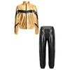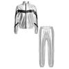 Детская куртка с металлизированным воротником-стойкой и длинными рукавами для девочек на молнии спереди и брюки с эластичной резинкой на талии для танцевальных выступлений в стиле хип-хоп