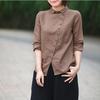 Женская рубашка из хлопка и льна, литературная рубашка, косая однотонная повседневная льняная рубашка с лацканами