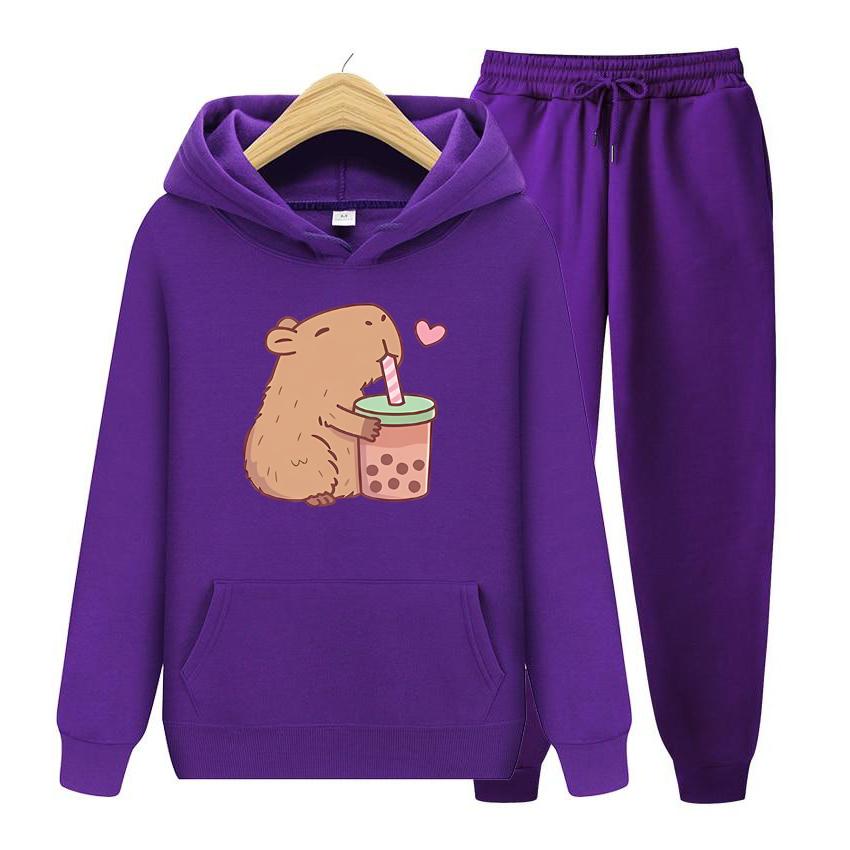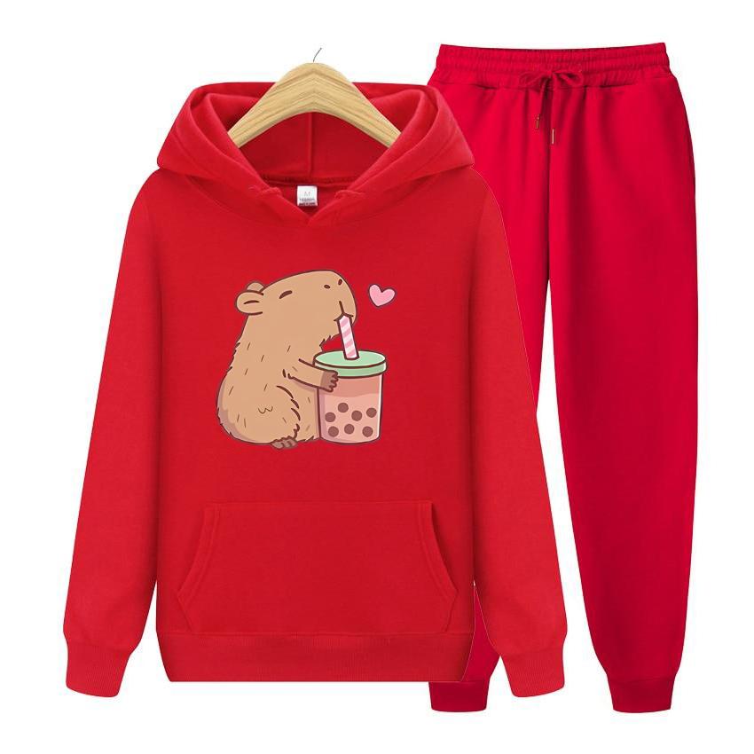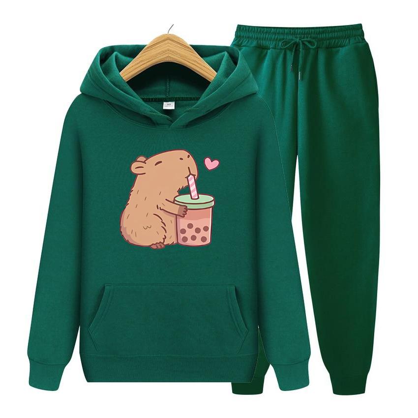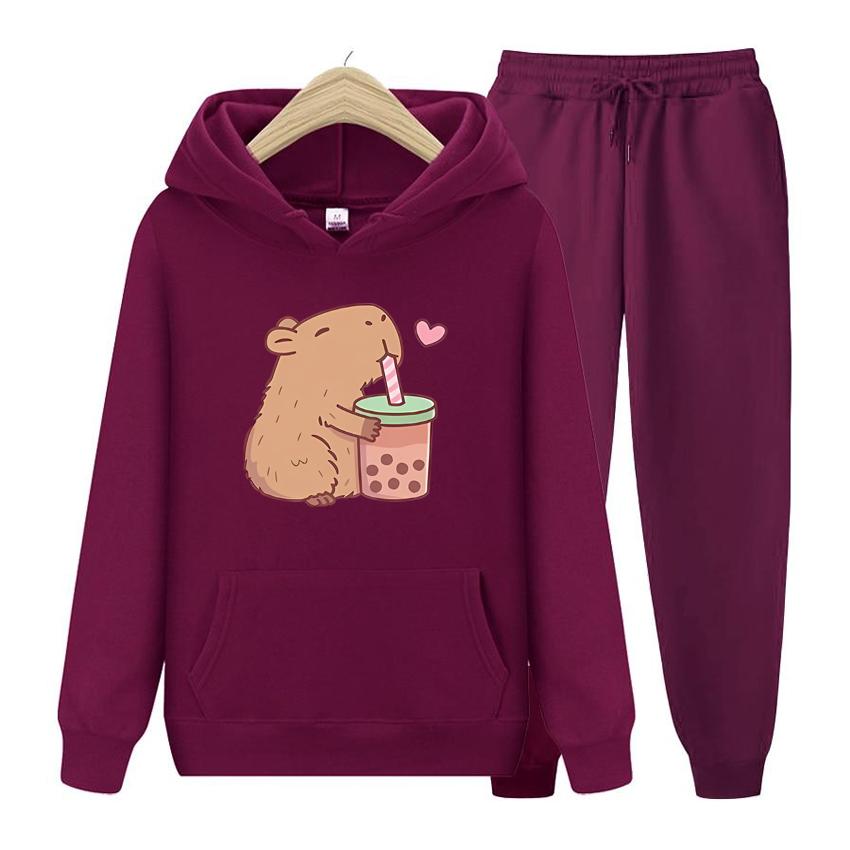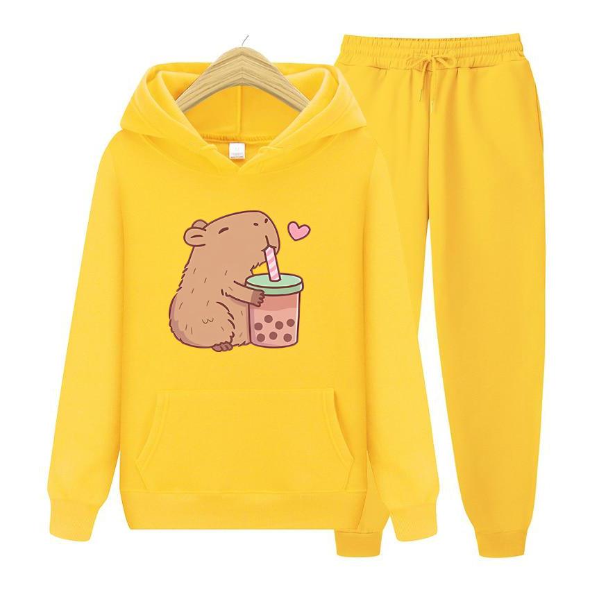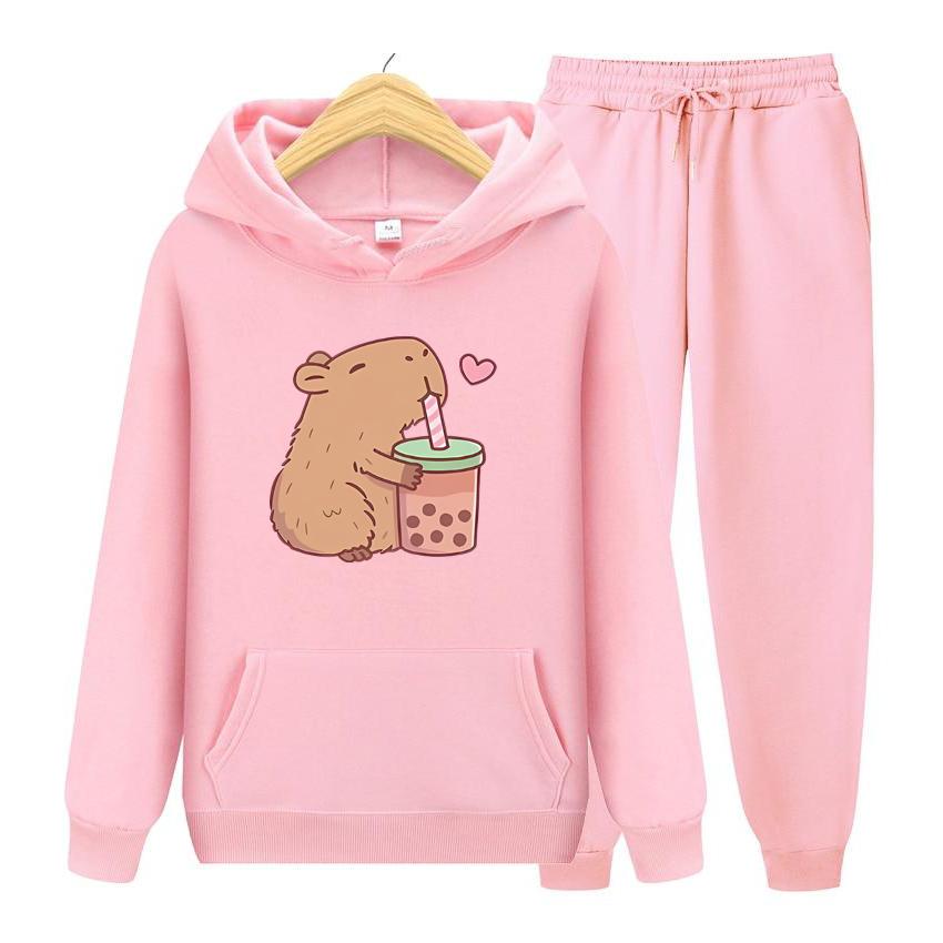Мужской спортивный костюм Kawaii Bubble Tea Толстовка с капибарой для женщин и мужчин Эстетичный графический комплект с капюшоном Унисекс Пуловеры в стиле Харадзюку Толстовки