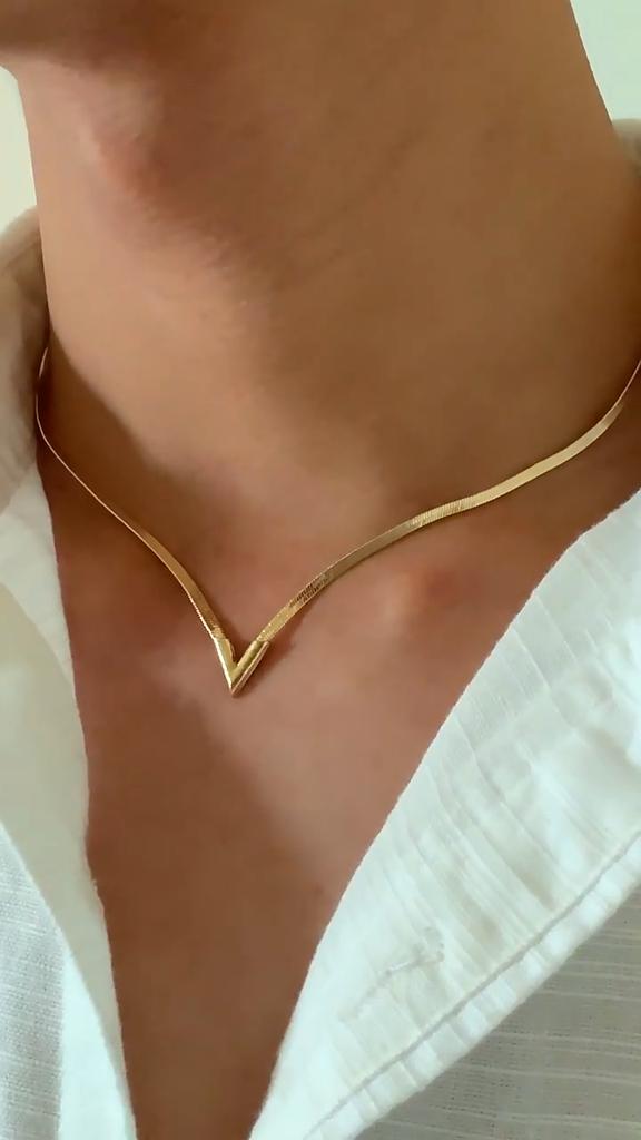 Простое и персонализированное мужское ожерелье с V-образной цепочкой из змеиной кости