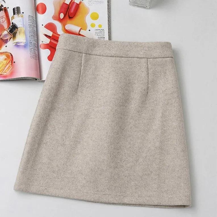Шерстяная юбка, женская осенне-зимняя юбка с высокой талией на один шаг, полуюбка, шерстяная юбка трапециевидной формы