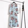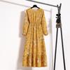 QICED Женская юбка для перерыва на чай, шифоновое платье с длинными рукавами и цветочным принтом, весна и осень, женственная юбка для похудения с талией, фея