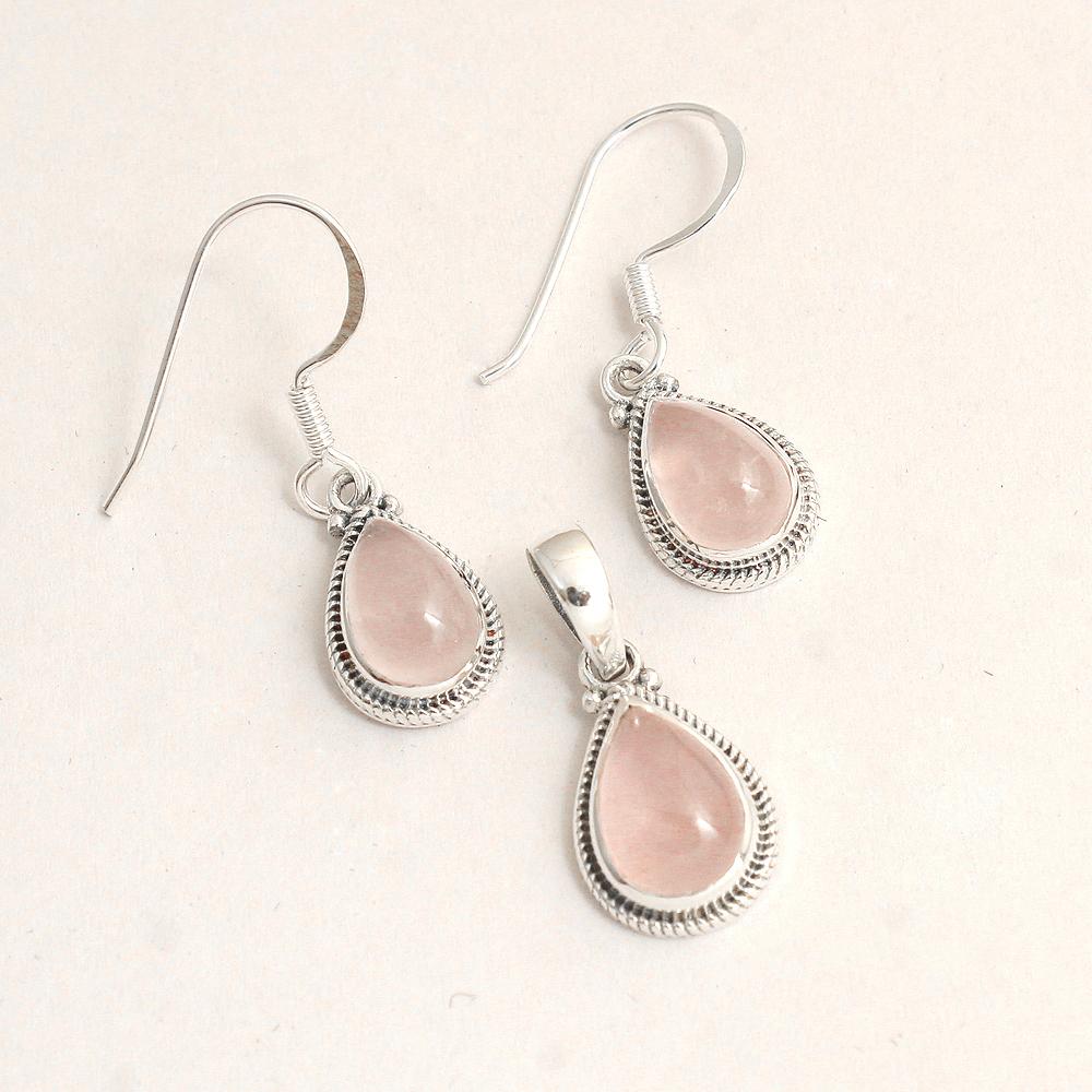 Набор серег с подвеской из розового кварца из стерлингового серебра 925 пробы, женские ювелирные изделия ручной работы