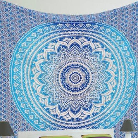 Blue Ombre Tapestry — настенные гобелены | Гобелен в стиле хиппи| Индийский гобелен с мандалой | Психоделический большой гобелен | Гобелен из 100% хлопка