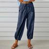 Летние женские свободные большие размеры однотонные простые на шнуровке тонкие повседневные брюки с девятью точками для похудения