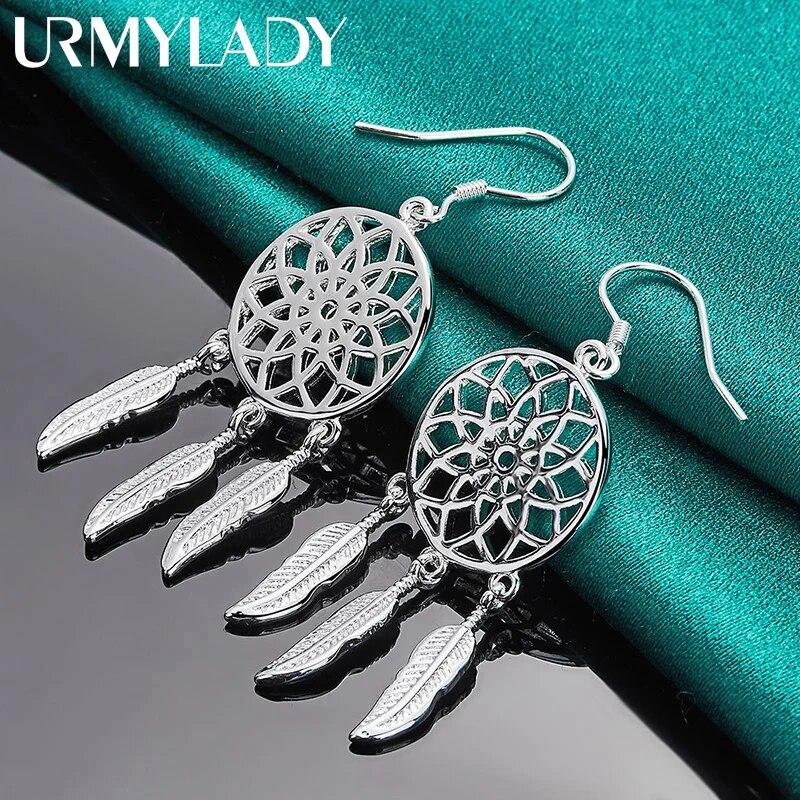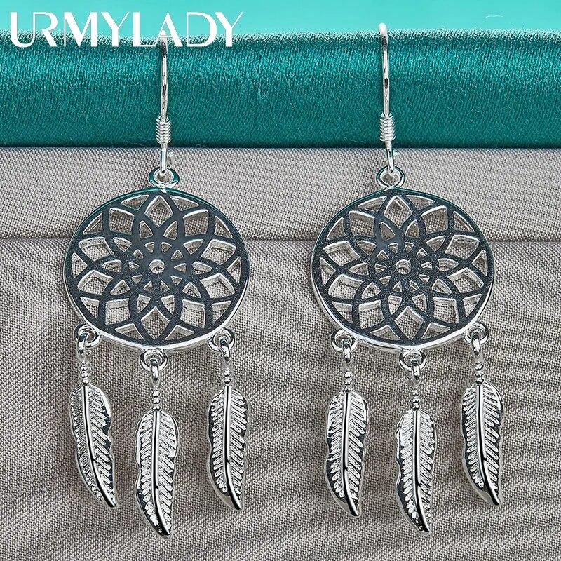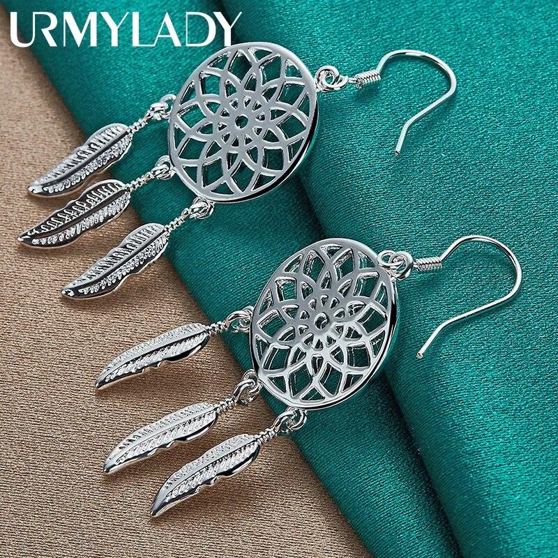 URMYLADY из стерлингового серебра 925 пробы, круглые серьги с перьями и цветами для женщин, модные очаровательные ювелирные изделия для свадебной вечеринки