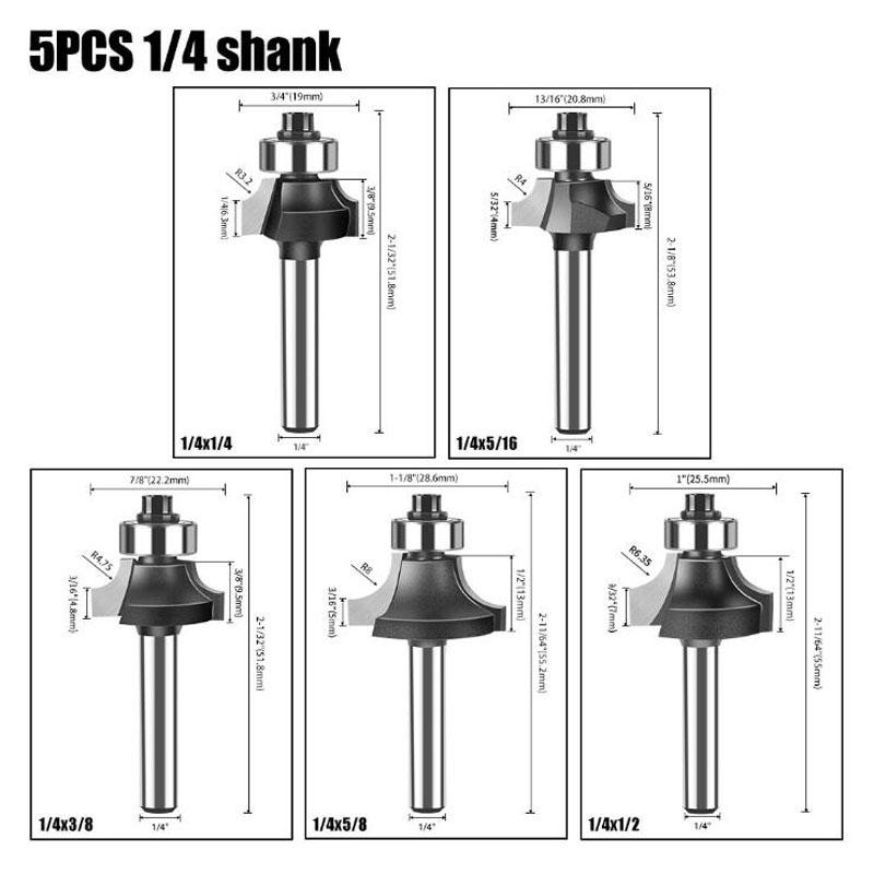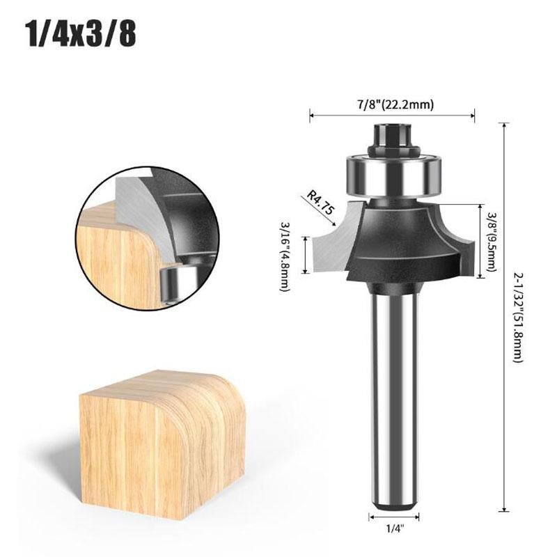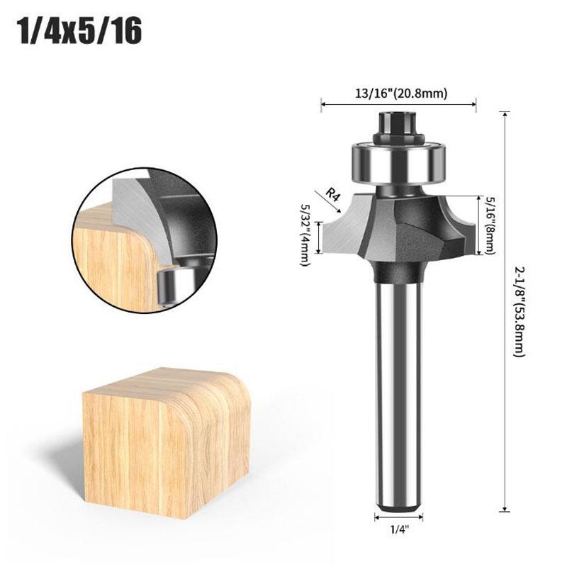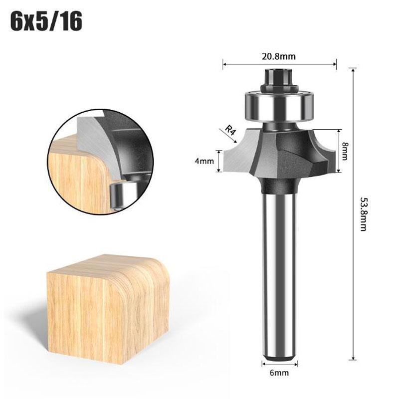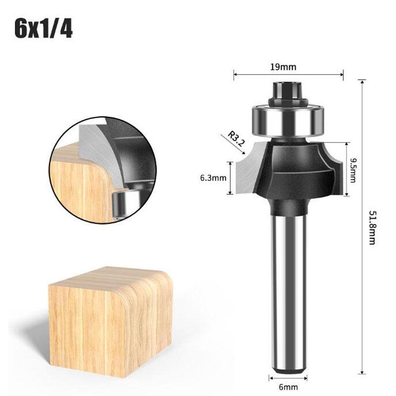 1/4 дюйма, 6 мм хвостовик, угловой круглый фрезерный станок с подшипником, фреза для работы по дереву, дереву