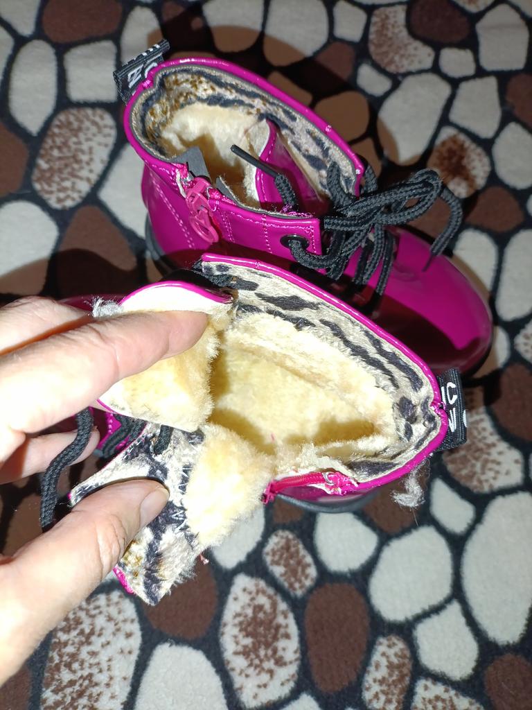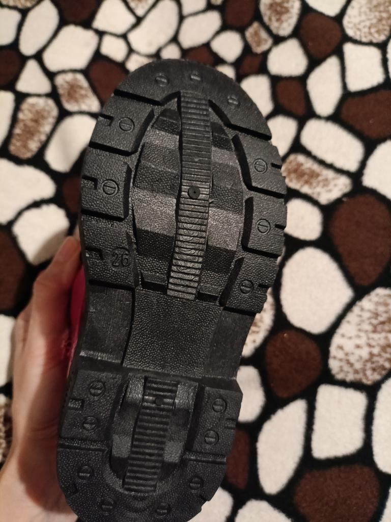 Хорошие утепленные ботиночки. На осень, думаю, хватит. Видно, что лакированная клеенка, но выглядит 👍Носок не уплотнен, от нажатия пальцами прогибается. Утеплитель мягенький, стельку можно при желании заменить. В 26 размере стелька 16 см. Хорошая подошва, сгибается