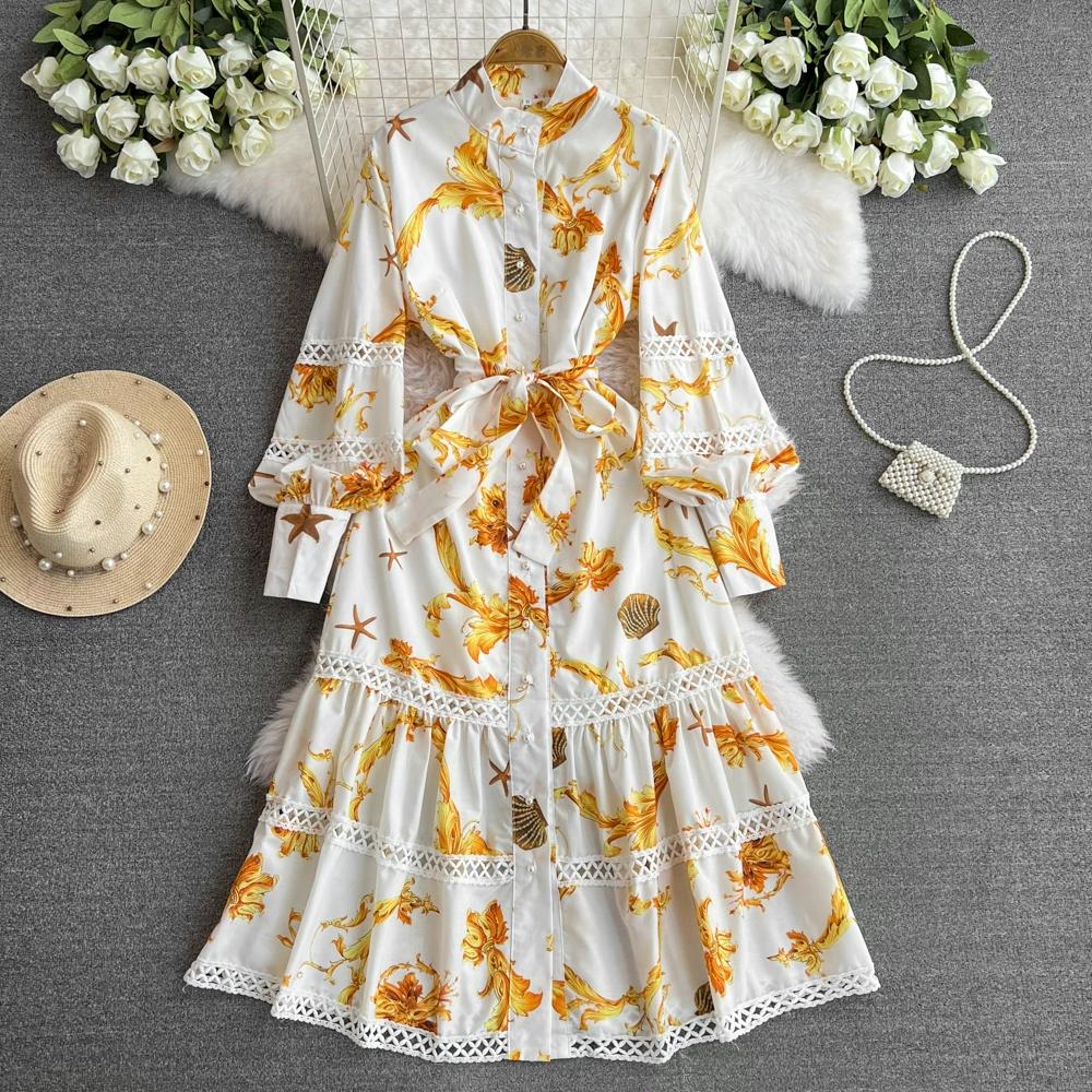 Женское винтажное богемное праздничное длинное платье макси с принтом и рукавом-фонариком, однобортное шикарное платье в стиле бохо