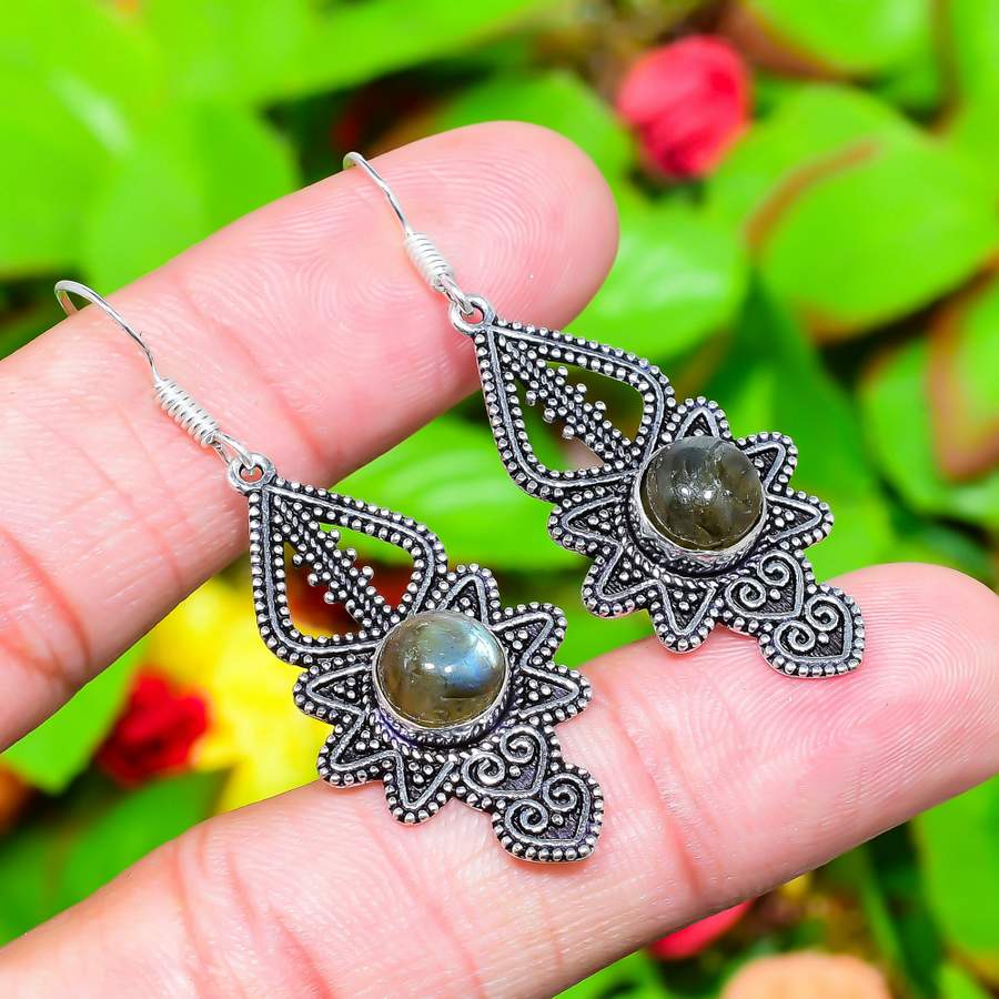 Серьги ручной работы из стерлингового серебра 925 пробы с натуральным лабрадоритом 2,09 дюйма l6f11