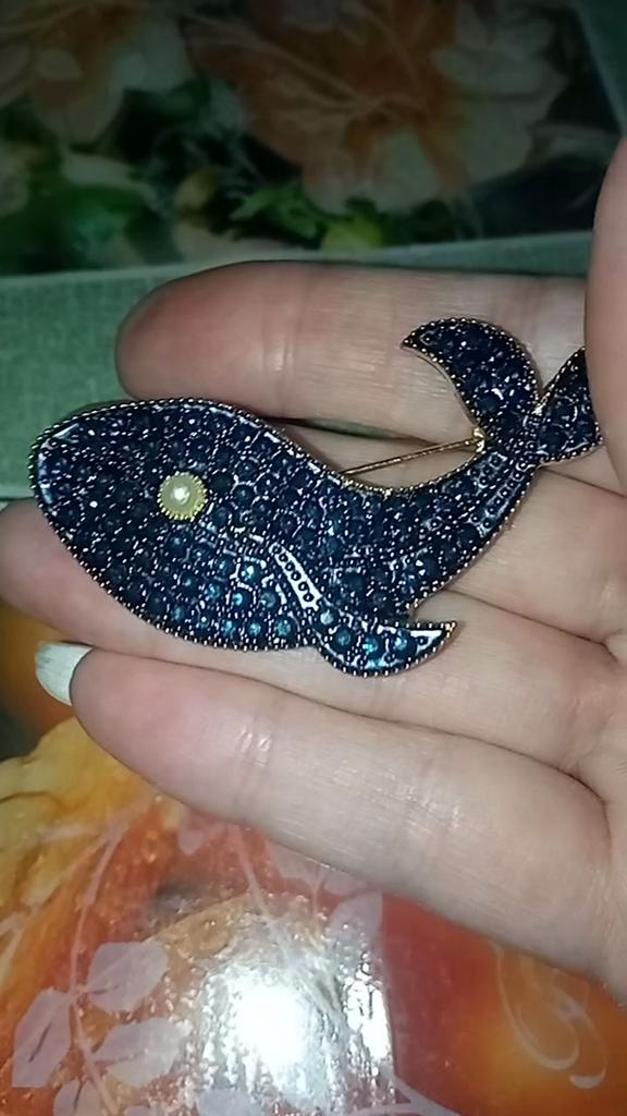 Классная брошка - синий кит🐋🐳! Просто прелесть! Стразики💎 очень красиво переливаются на свету, особенно при искусственном освещении, достаточно большой 🐋, пришёл без повреждений, продавцу спасибо💛, рекомендую🥰