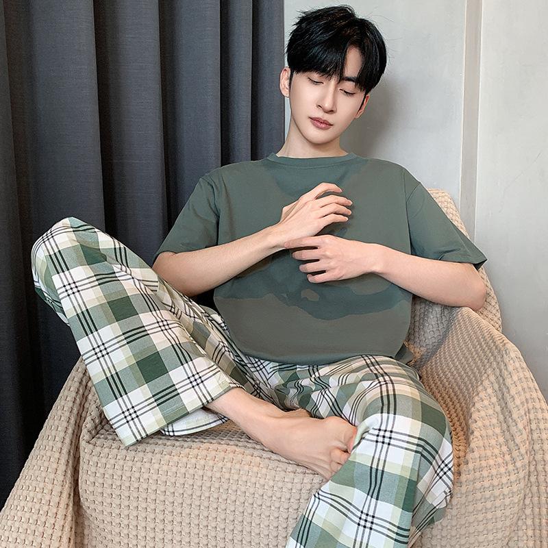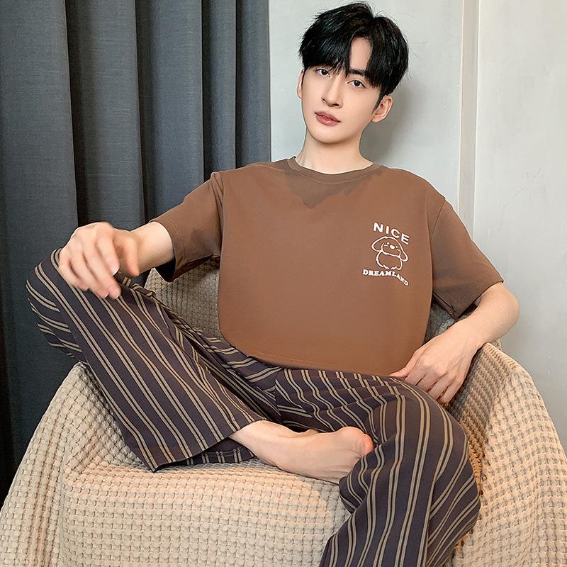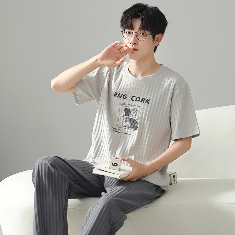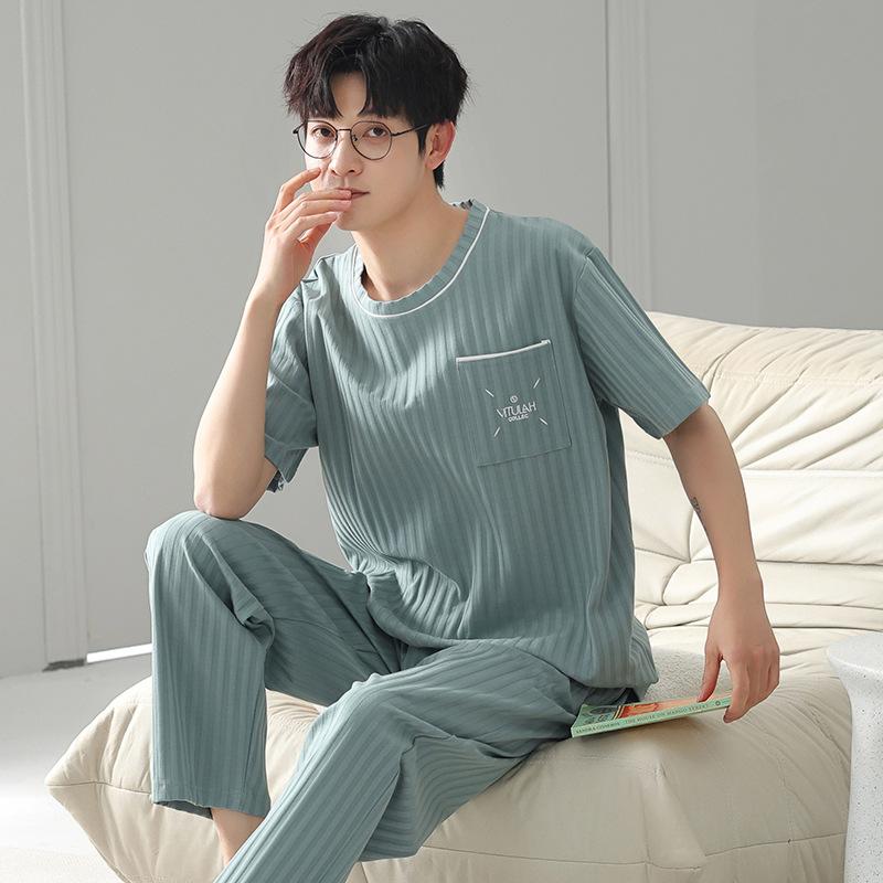 Мужские новые весенние и летние тонкие брюки с короткими рукавами, пижамы для отдыха, домашний костюм большого размера