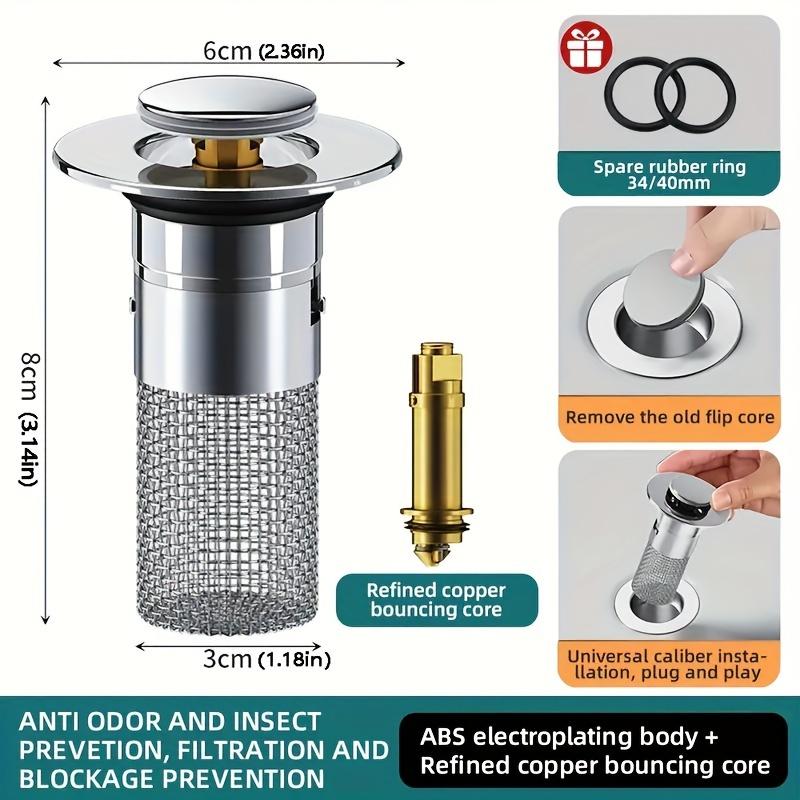 Пробка для раковины в ванной из нержавеющей стали, сливной фильтр для раковины, выдвижная раковина, фильтр с прыгающим сердечником и защитой от запаха, предметы первой необходимости