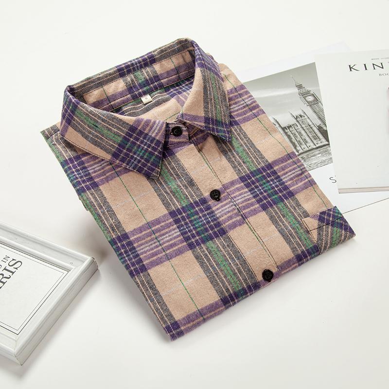 2024 весенние клетчатые рубашки, женские топы и блузки с длинным рукавом, женские повседневные блузки с карманами, свободная женская рубашка в клетку фиолетового цвета