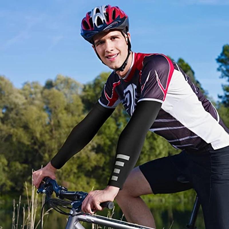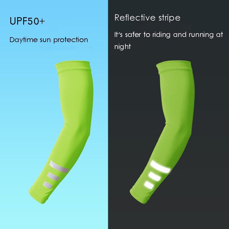 Хорошая видимость: компрессионные рукава для защиты рук оснащены светоотражающими ремнями, которые обеспечивают хорошую видимость в ночное время и обеспечивают безопасность при езде на велосипеде, ходьбе или беге.; Рукава имеют яркий цвет, который легко сочетается с различными нарядами.