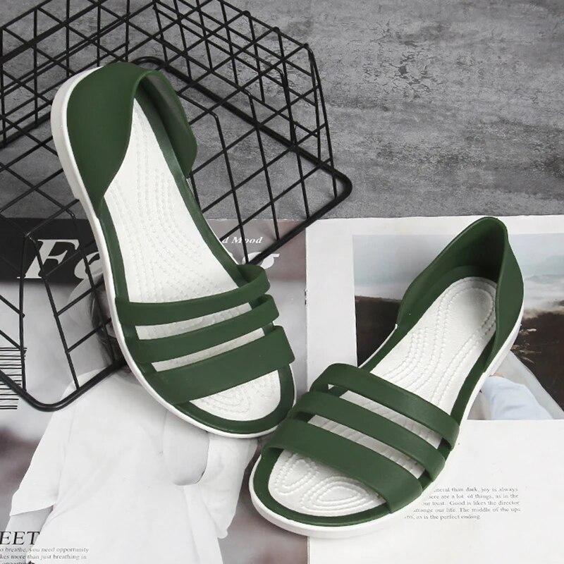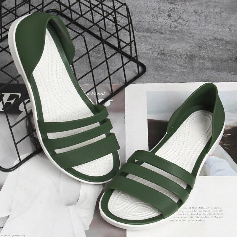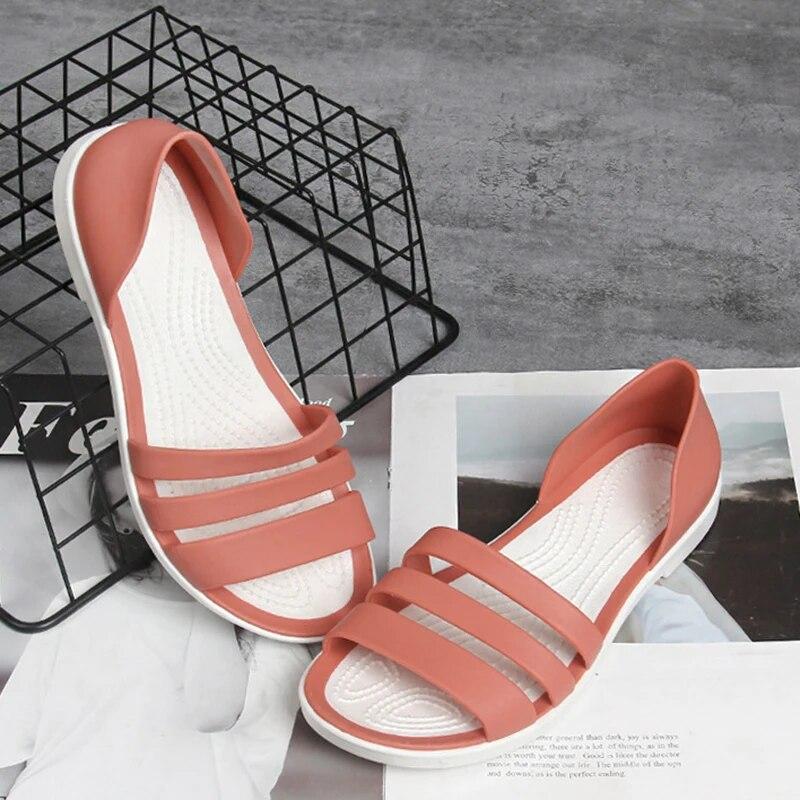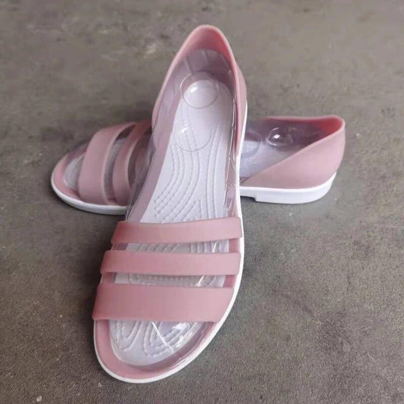 2024 модные женские шлепанцы с открытым носком, летние сандалии на плоской подошве ярких цветов, повседневные пляжные открытые женские прозрачные тапочки