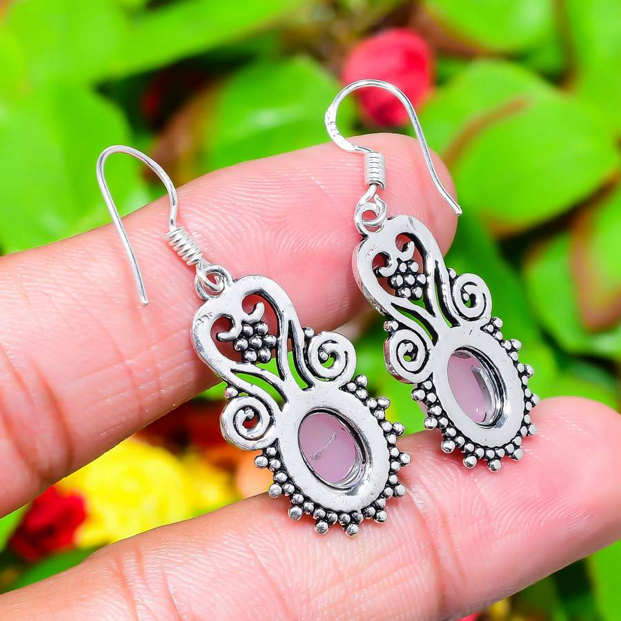 Серьги ручной работы из стерлингового серебра 925 пробы с натуральным розовым кварцем 1,77 дюйма R8j01