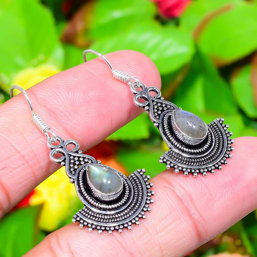 Серьги ручной работы из стерлингового серебра 925 пробы с натуральным лабрадоритом 1,73 дюйма u8b32
