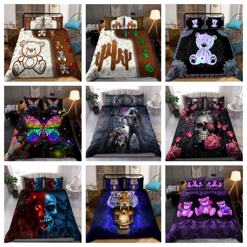 Tmarc Tee Комплект постельного белья с радужной бабочкой и принтом в виде черепа и плюшевого мишки