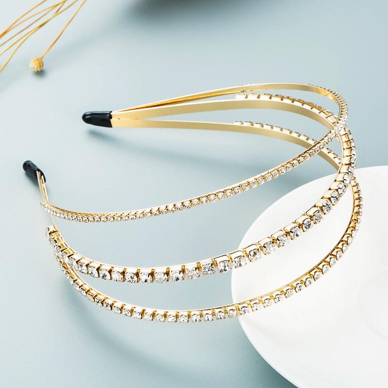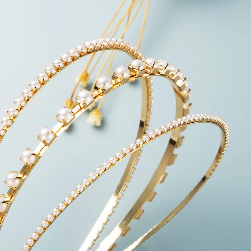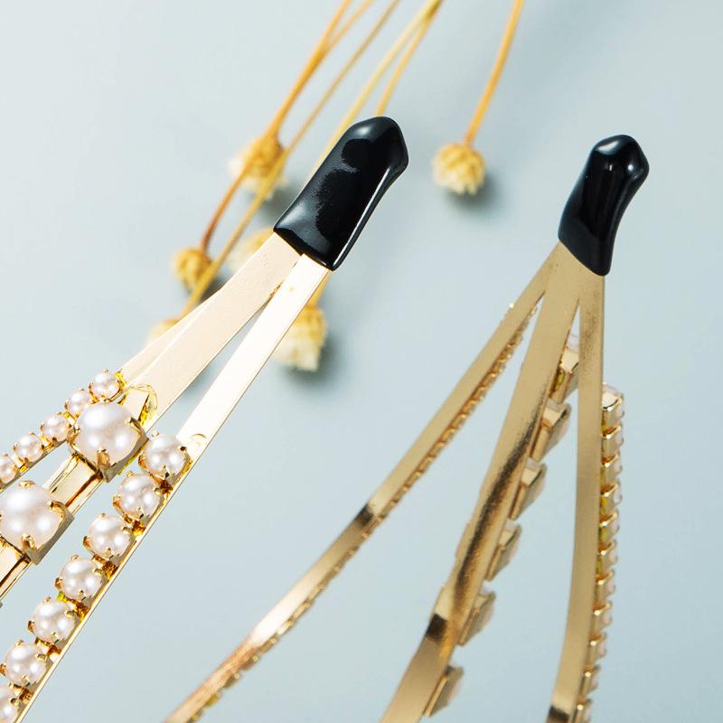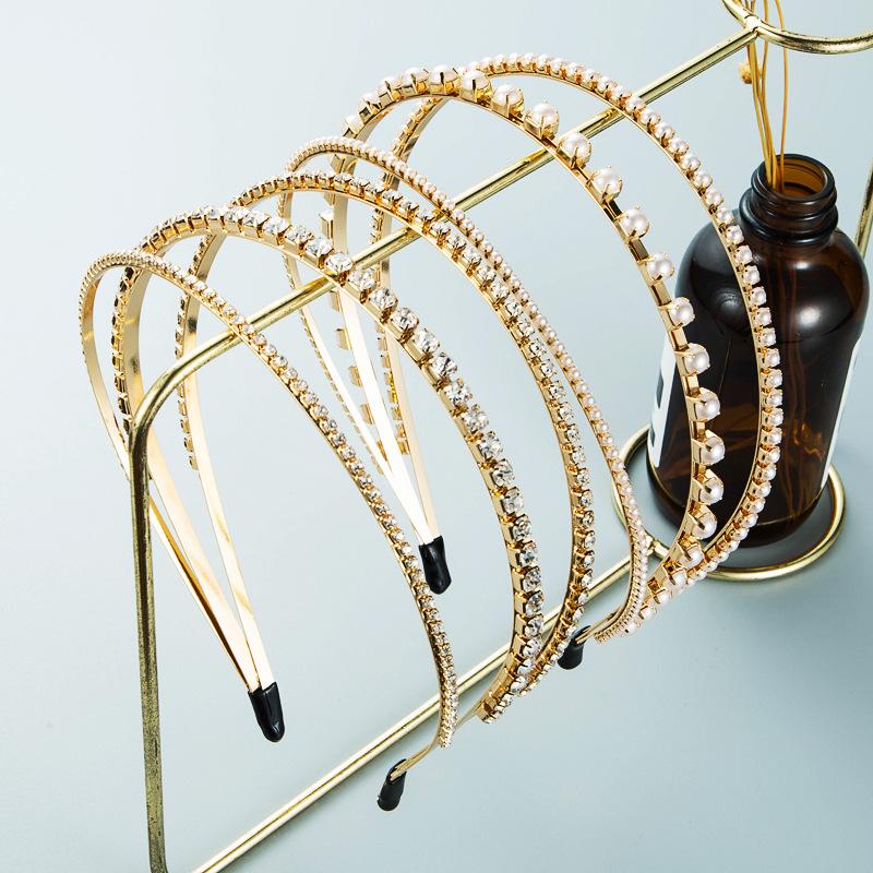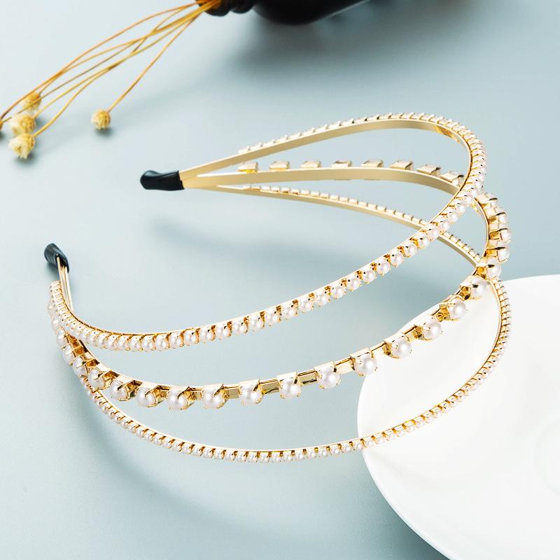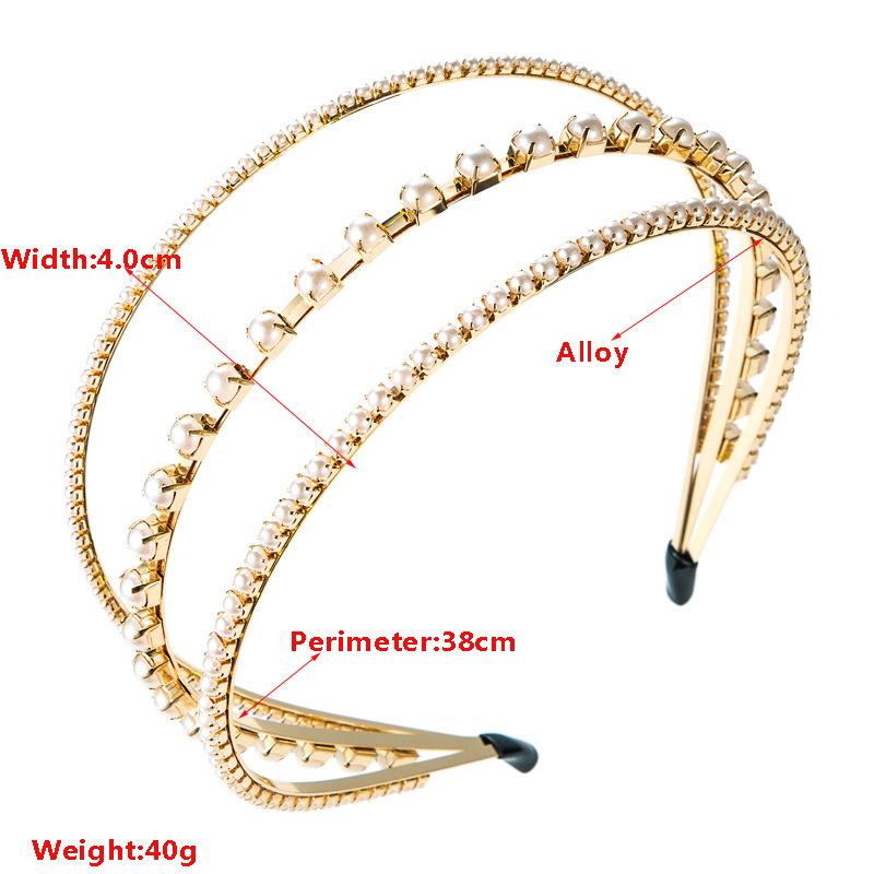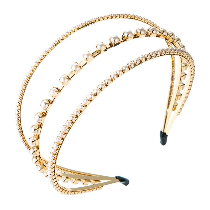 Женская повязка для волос из сплава с кристаллами, инкрустированная жемчугом, трехслойная повязка на голову, креативный головной убор