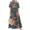 QICED Повседневная женская Свободная рубашка с круглым вырезом и винтажным цветочным принтом с коротким рукавом