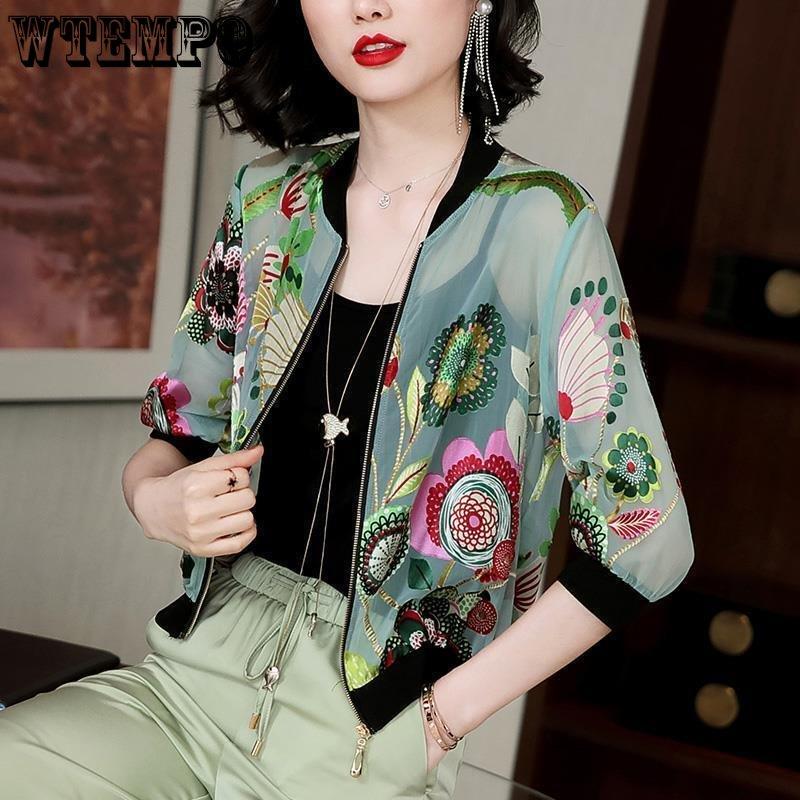 Шифоновая летняя куртка с принтом для женщин 5XL, тонкий тонкий солнцезащитный кардиган для мамы, бомбер с длинными рукавами, верхняя одежда — купить товар онлайн с бесплатной доставкой по всему миру!