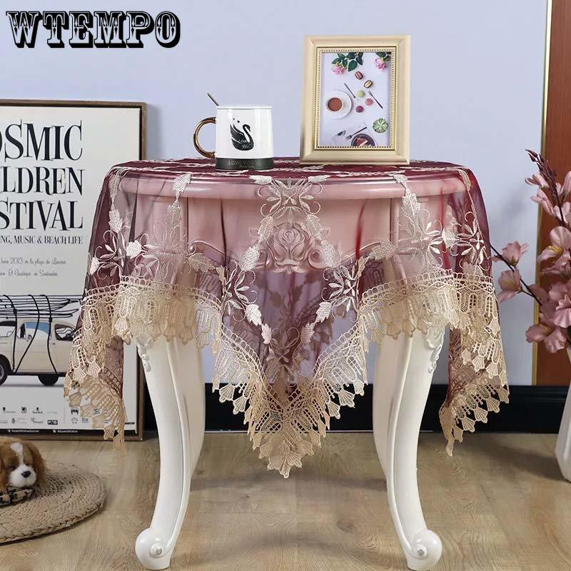 Пряжа Вышитая кружевная скатерть Круглый стол Квадратная скатерть Чайная скатерть Прямоугольная скатерть Крышка прикроватной тумбочки Ретро Европейский стиль