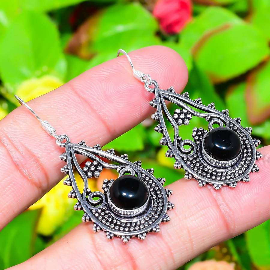 Серьги ручной работы из стерлингового серебра 925 пробы с натуральным черным ониксом 2,05 дюйма Y4e81 — купить товар онлайн с бесплатной доставкой до всему миру!