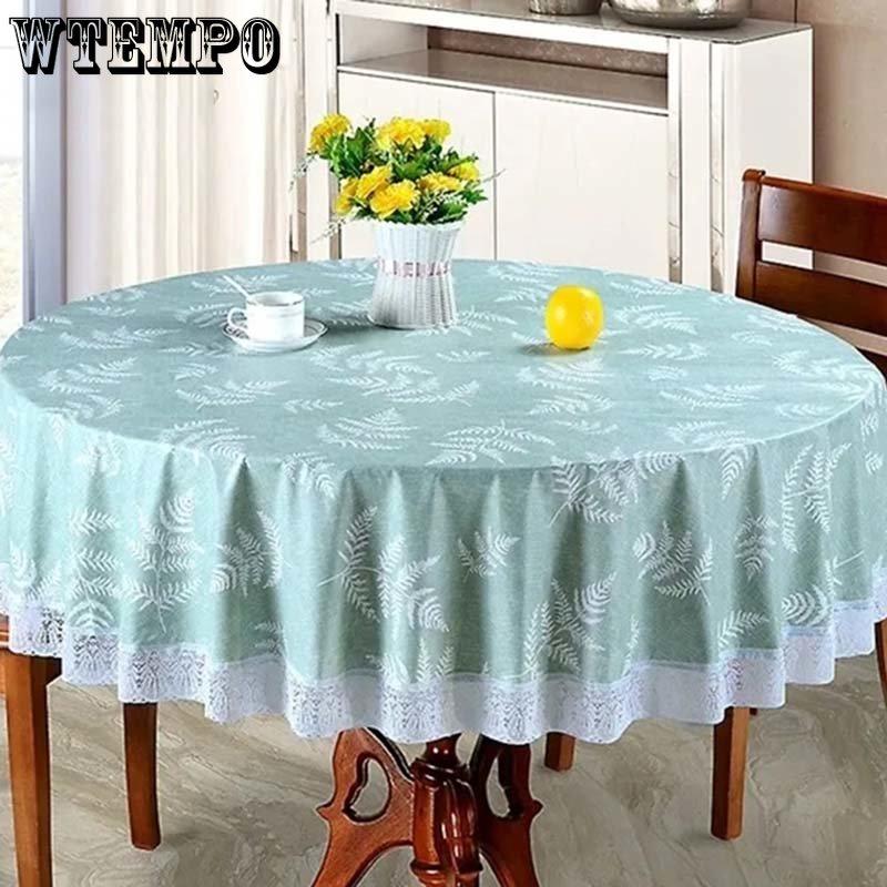 Бытовая большая круглая скатерть из ПВХ с кружевным принтом, винтажный европейский стиль, водонепроницаемая, маслостойкая, устойчивая к ожогам, легко стирается