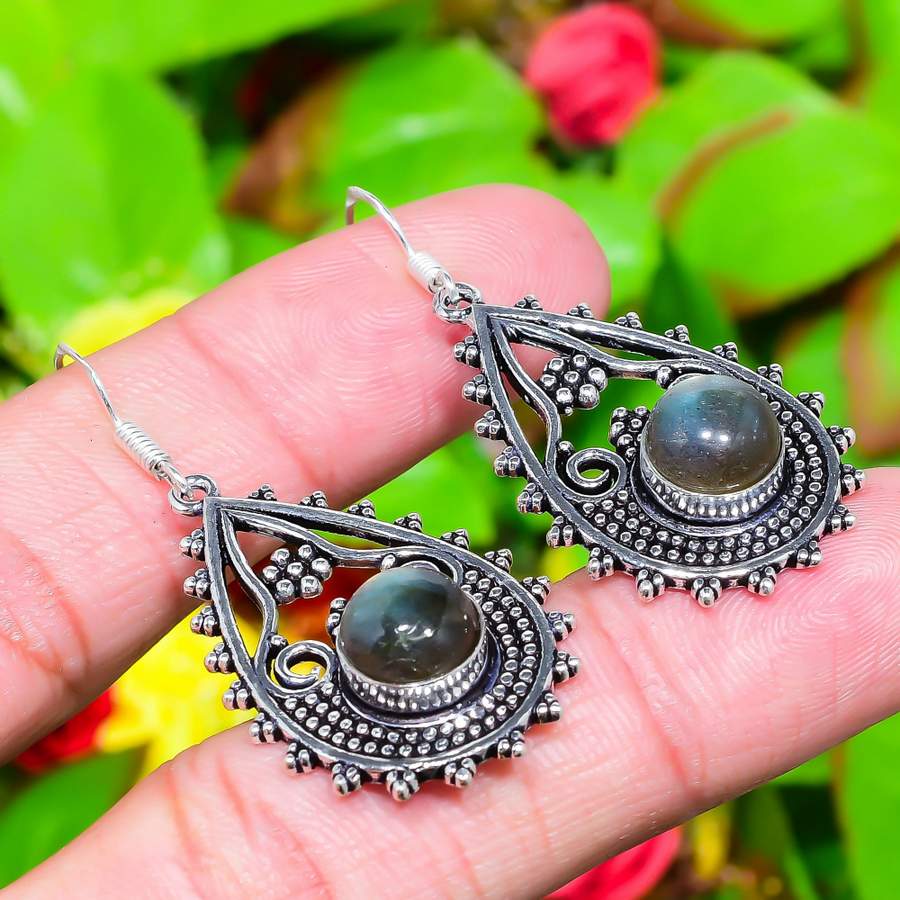 Серьги ручной работы из стерлингового серебра 925 пробы с натуральным лабрадоритом 2,05 дюйма Z9u42