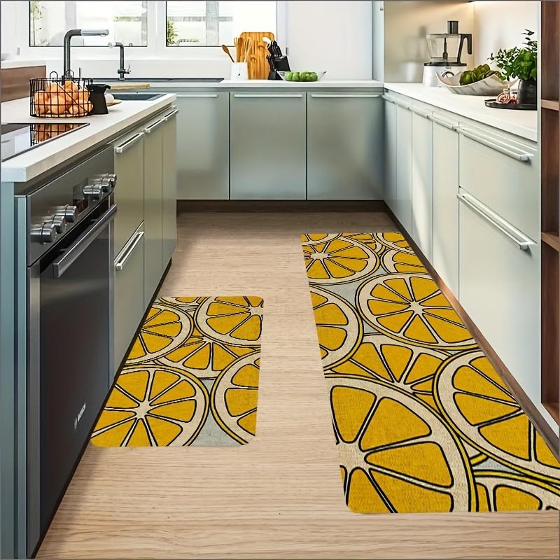 1 шт., противоскользящие коврики с лимонным узором, кухонный коврик, мягкий утолщенный кухонный коврик, водонепроницаемый винтажный абсорбирующий нескользящий маслостойкий напольный коврик, коврик для бега
