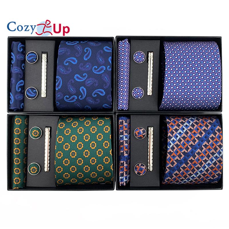 Комплект Cosy Up из 6 предметов, мужские галстуки с узором пейсли, включая галстук, квадратный шарф, манжеты, зажим для галстука, подарочная коробка