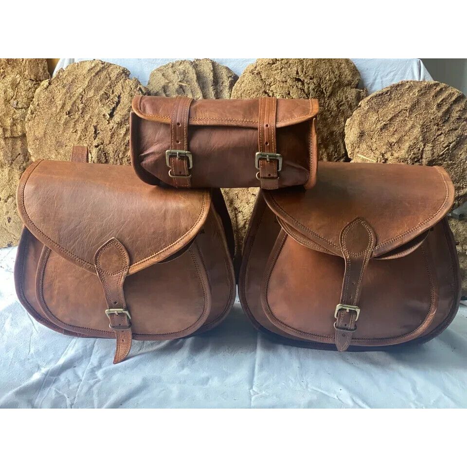 Седло мотоцикла, 3 боковые сумки, винтажная кожаная сумка для инструментов с поворотным рычагом