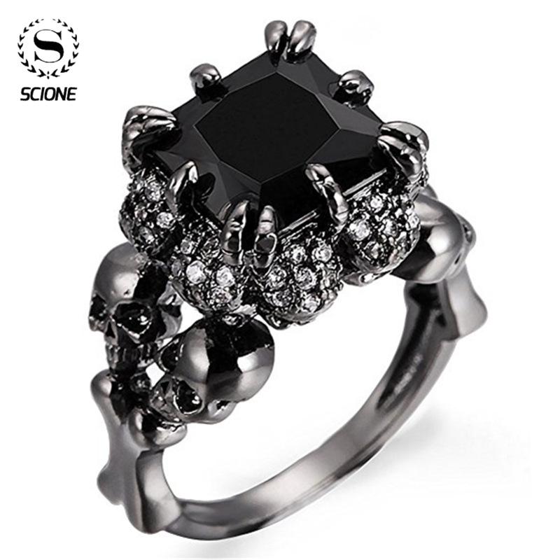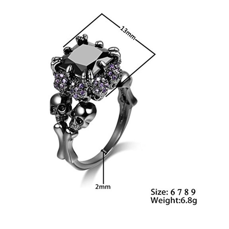 LUXY MOON уникальное унисекс инкрустированное череп трехмерное серебряное кольцо с черным цирконом ювелирные изделия для женщин и мужчин