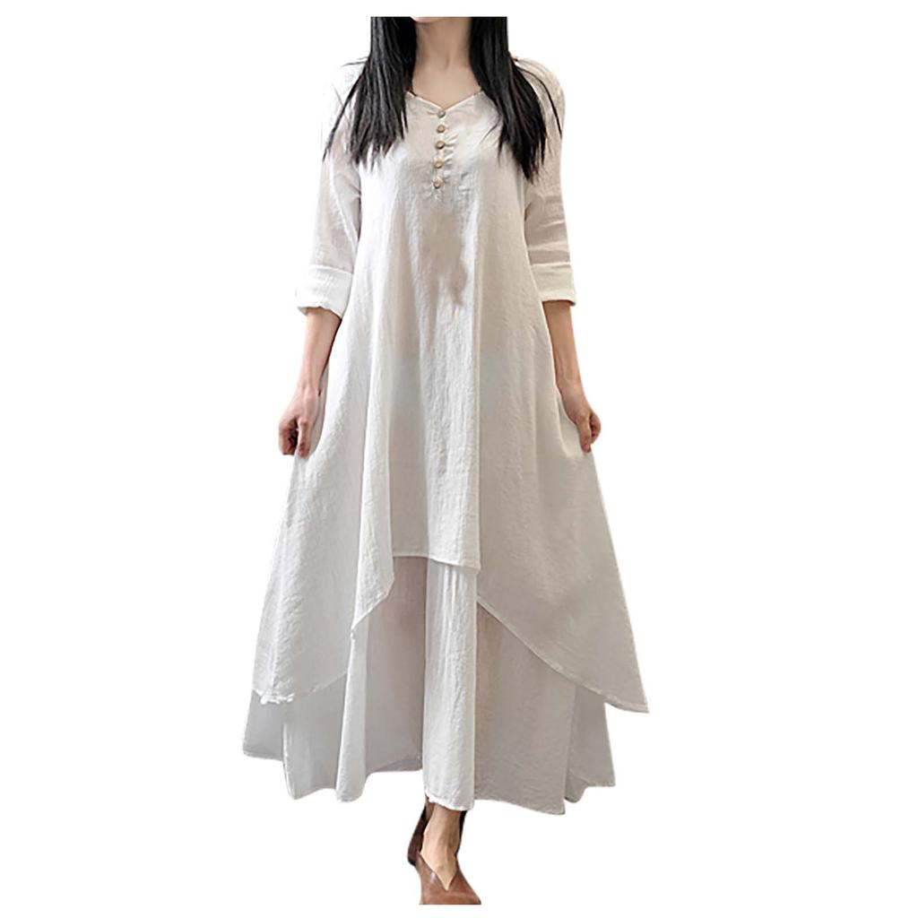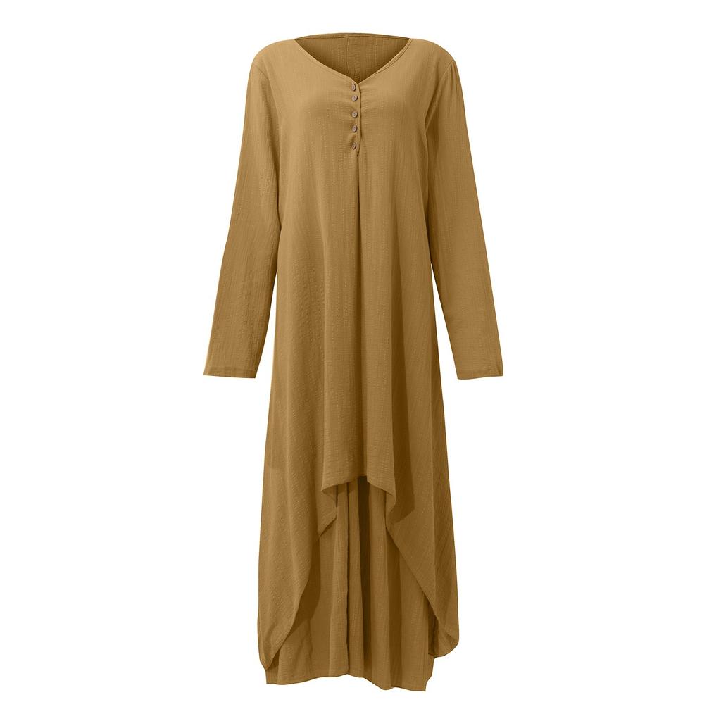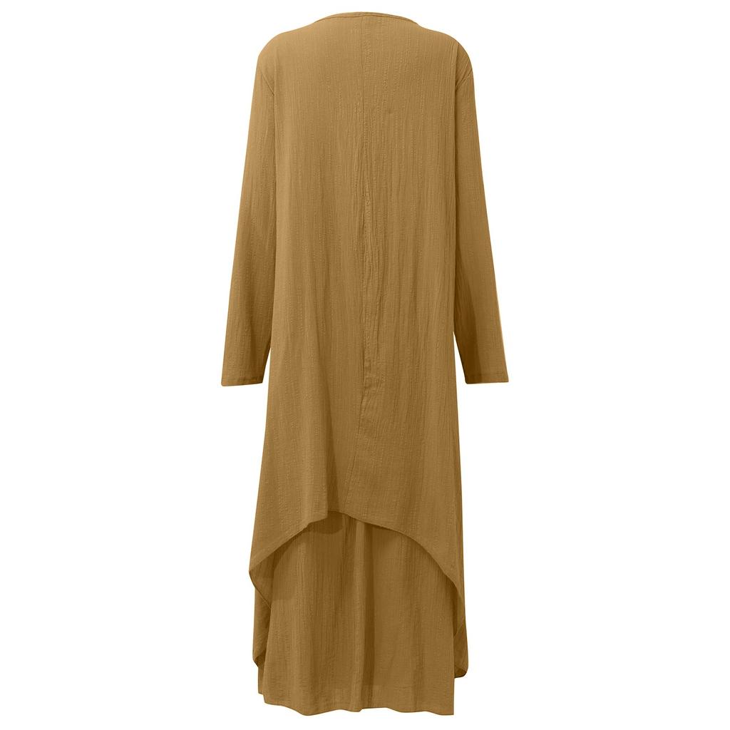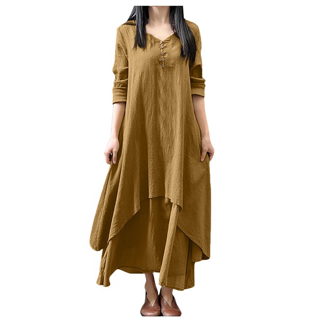 Женское повседневное свободное платье из хлопка и льна с длинным рукавом в стиле бохо, нерегулярное платье
