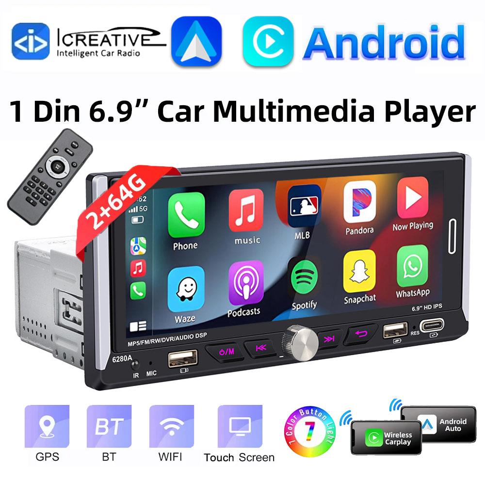 ●HD 6,9-дюймовый 2,5D-экран IPS из закаленного стекла, зеркало, авторадиоплеер