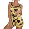 Женский пижамный комплект из 2 шт./компл. с принтом в виде сердца и гофрированными гофрированными бретельками без рукавов с эластичной резинкой на талии, мягкий шелковистый комплект домашней одежды с верхом и шортами