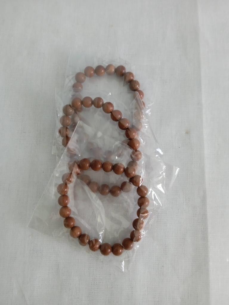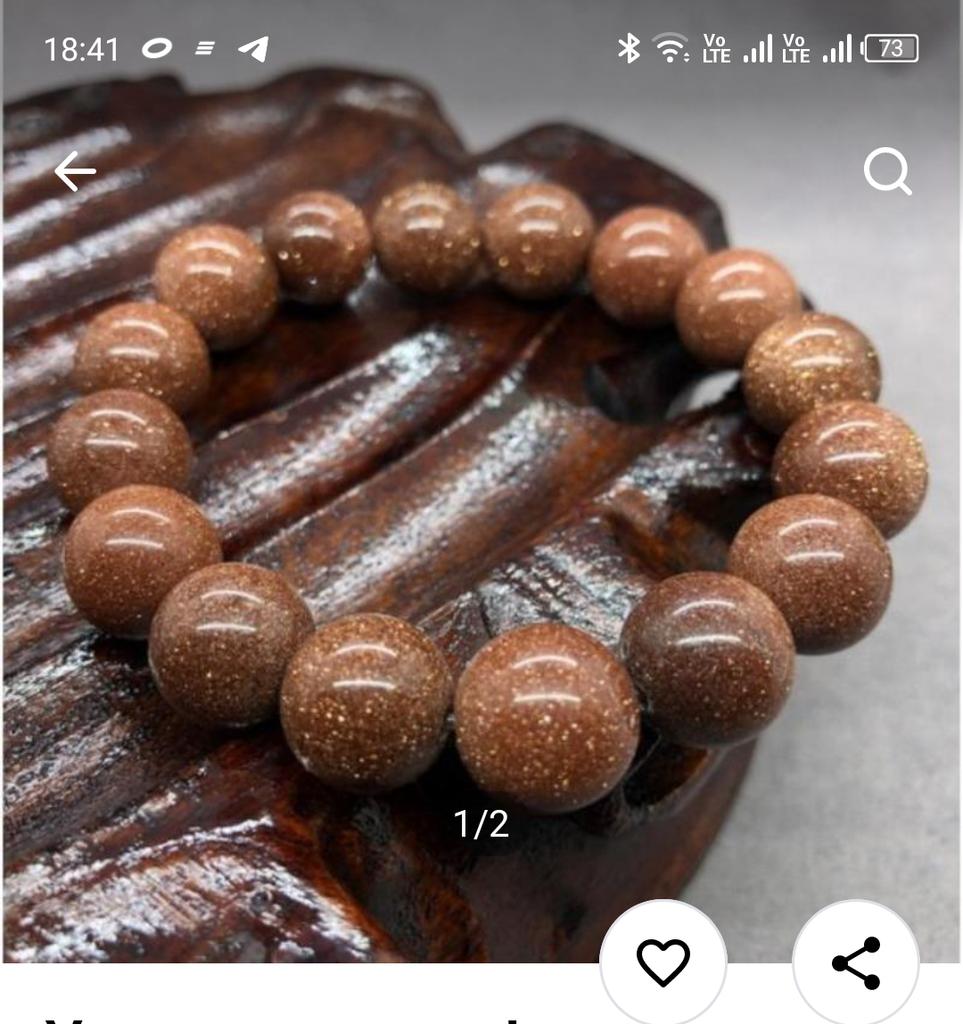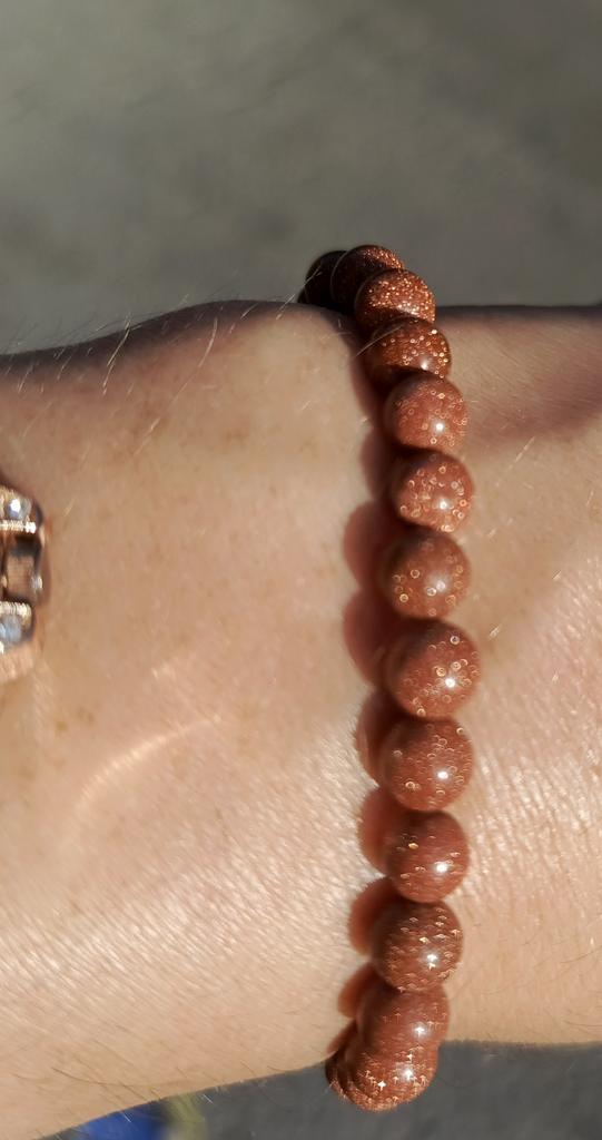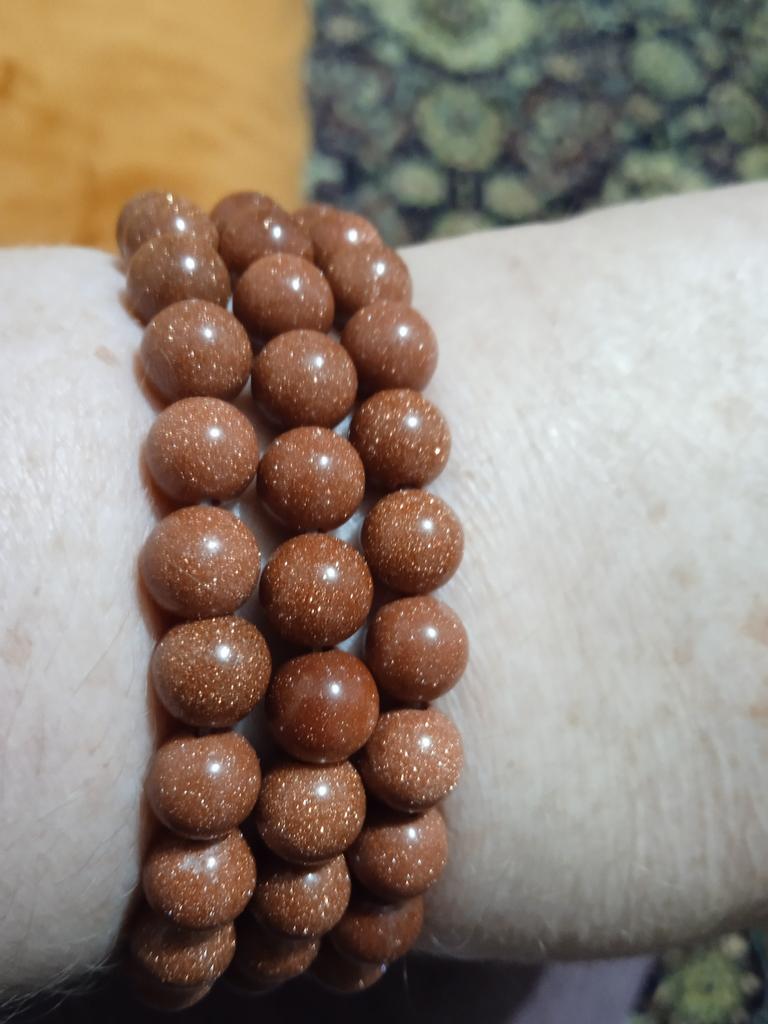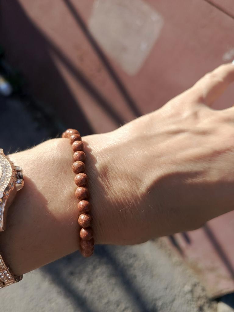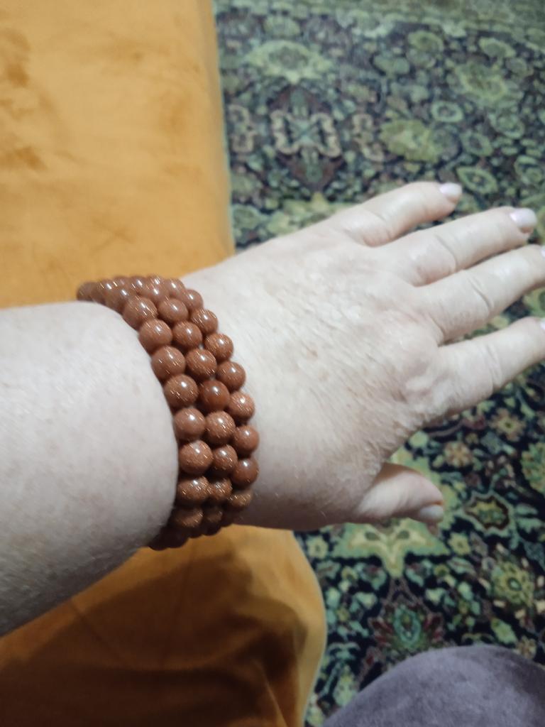Бусины в браслете до 8 мм не дотягивают. 6-7 мм. И по качеству совершенно разные. Примерно треть бусин смотрится как цветная смола - проблесков золотого песка вообще нет. Разочарована. Да и размер - на детскую руку. Если бы бусины были 8 мм - то был бы по размеру.