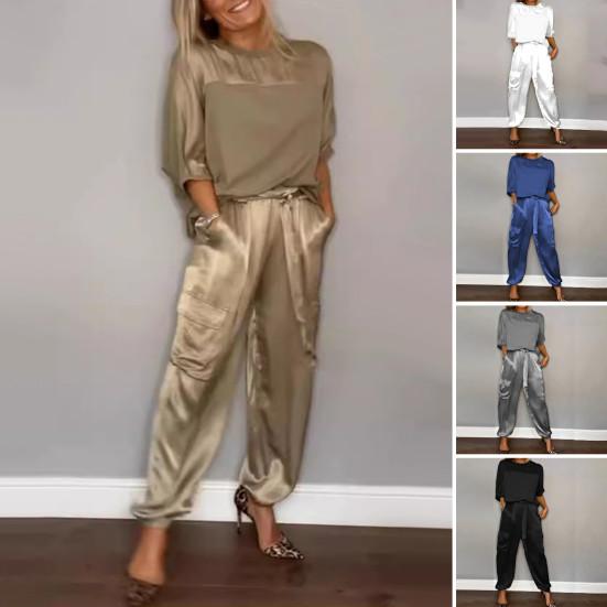 Этот повседневный костюм с лоскутными деталями, круглым вырезом и рукавами три четверти излучает модную атмосферу.. Шаровары со шнуровкой и двойными карманами придают ансамблю нотку изысканности.. Универсальная и модная модель, которую можно комбинировать с ботинками или кроссовками для создания индивидуального образа.