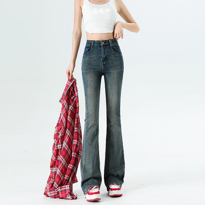 Джинсы небольшого размера с высокой талией для женщин. Тонкие и узкие универсальные повседневные эластичные брюки-клеш. — купить товар онлайн с бесплатной доставкой по всему миру!