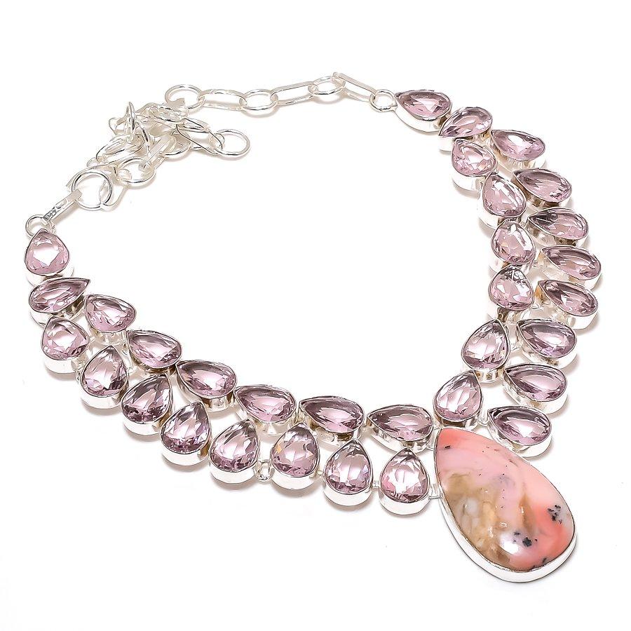 Ювелирное ожерелье из стерлингового серебра 925 пробы с натуральным розовым опалом и кунцитом ручной работы 18 дюймов U0m87 — купить товар онлайн с бесплатной доставкой по всему миру!