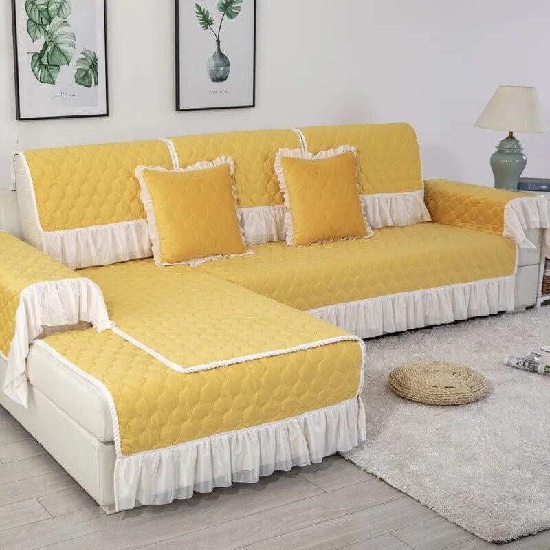 Размер диванных чехлов, которые вы выберете, должен быть на 20 ~ 30 см больше, чем фактический размер дивана. Остаточную часть можно повесить вниз, чтобы защитить боковую часть дивана или заправить под диван, чтобы предотвратить скольжение.