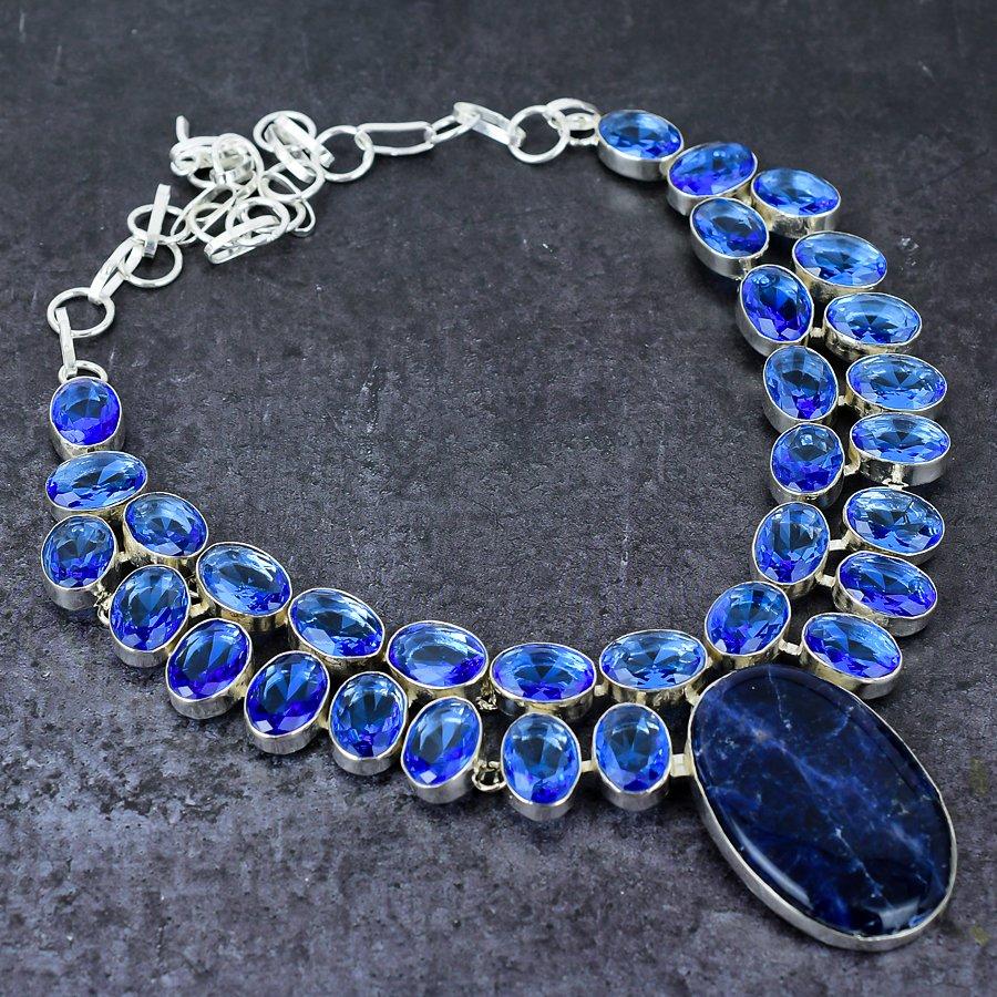 Ожерелье ручной работы из стерлингового серебра 925 пробы с натуральным содалитом и топазом, 18 дюймов g7C96