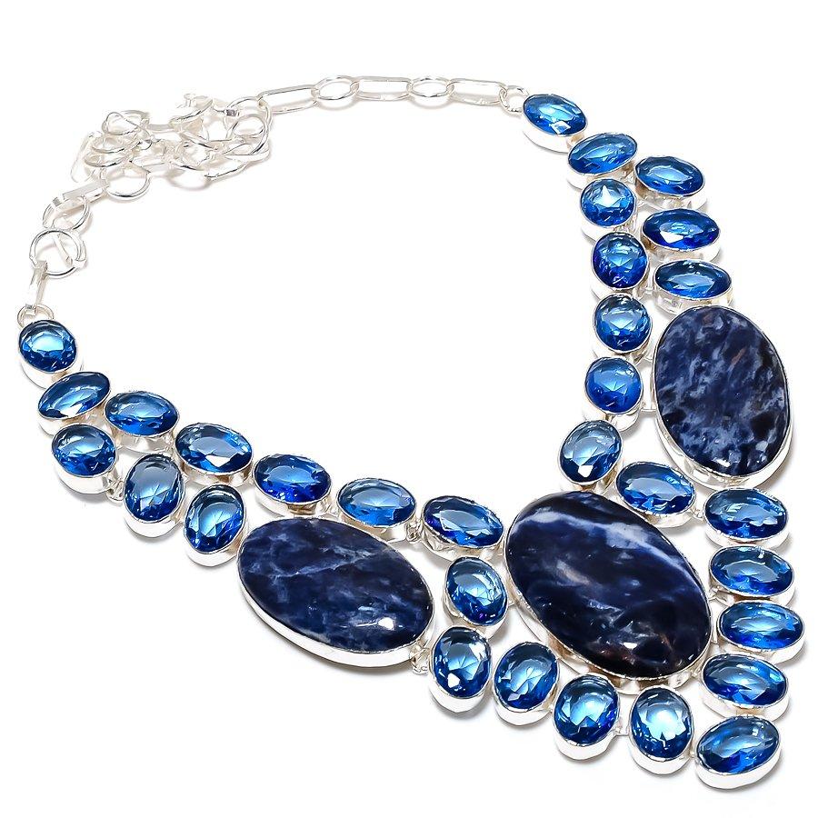 Ожерелье ручной работы из стерлингового серебра 925 пробы с натуральным содалитом и топазом, 18 дюймов P7A23